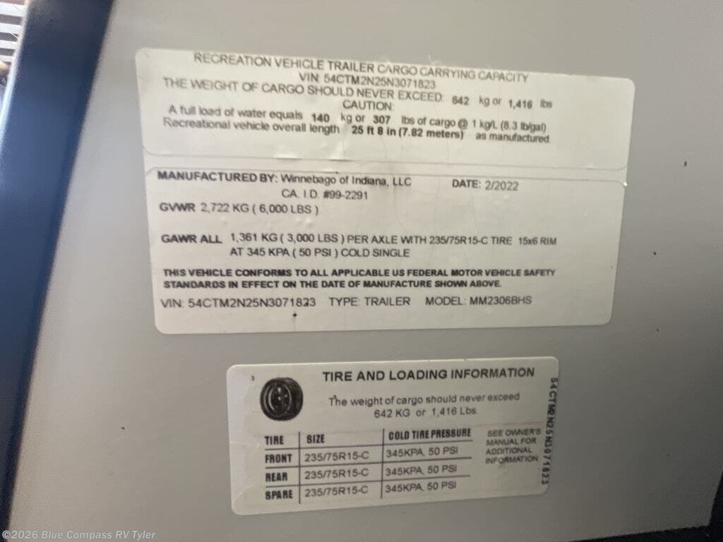 Request More Info on this 2022 Winnebago Micro Minnie 2306BHS Offered for sale by Blue Compass RV Tyler