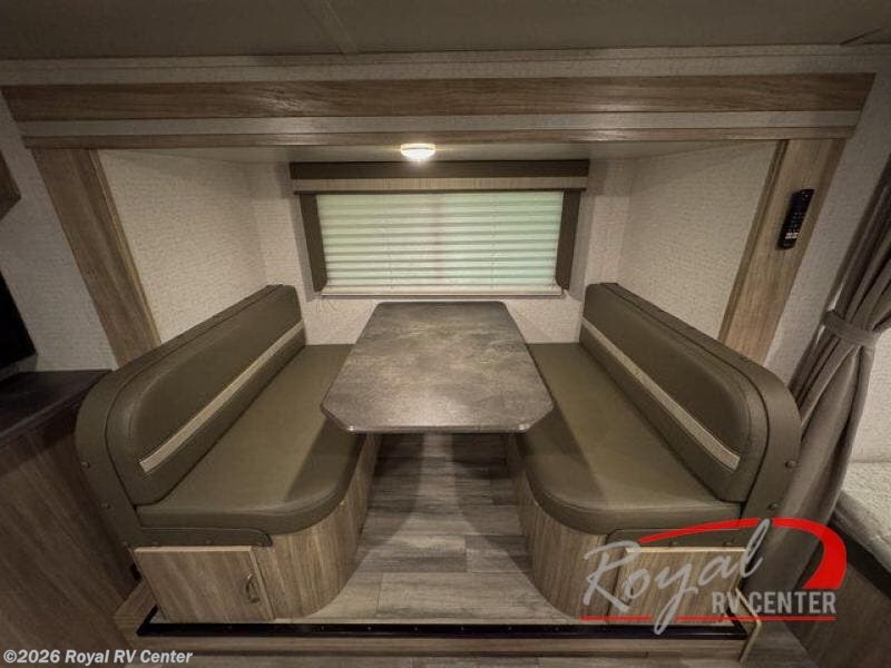 The booth dinette slide creates extra interior space for dining, relaxing, or additional sleeping. You can also opt for a sofa with table for a more lounge-style setup. An LED TV provides entertainment wherever you travel.