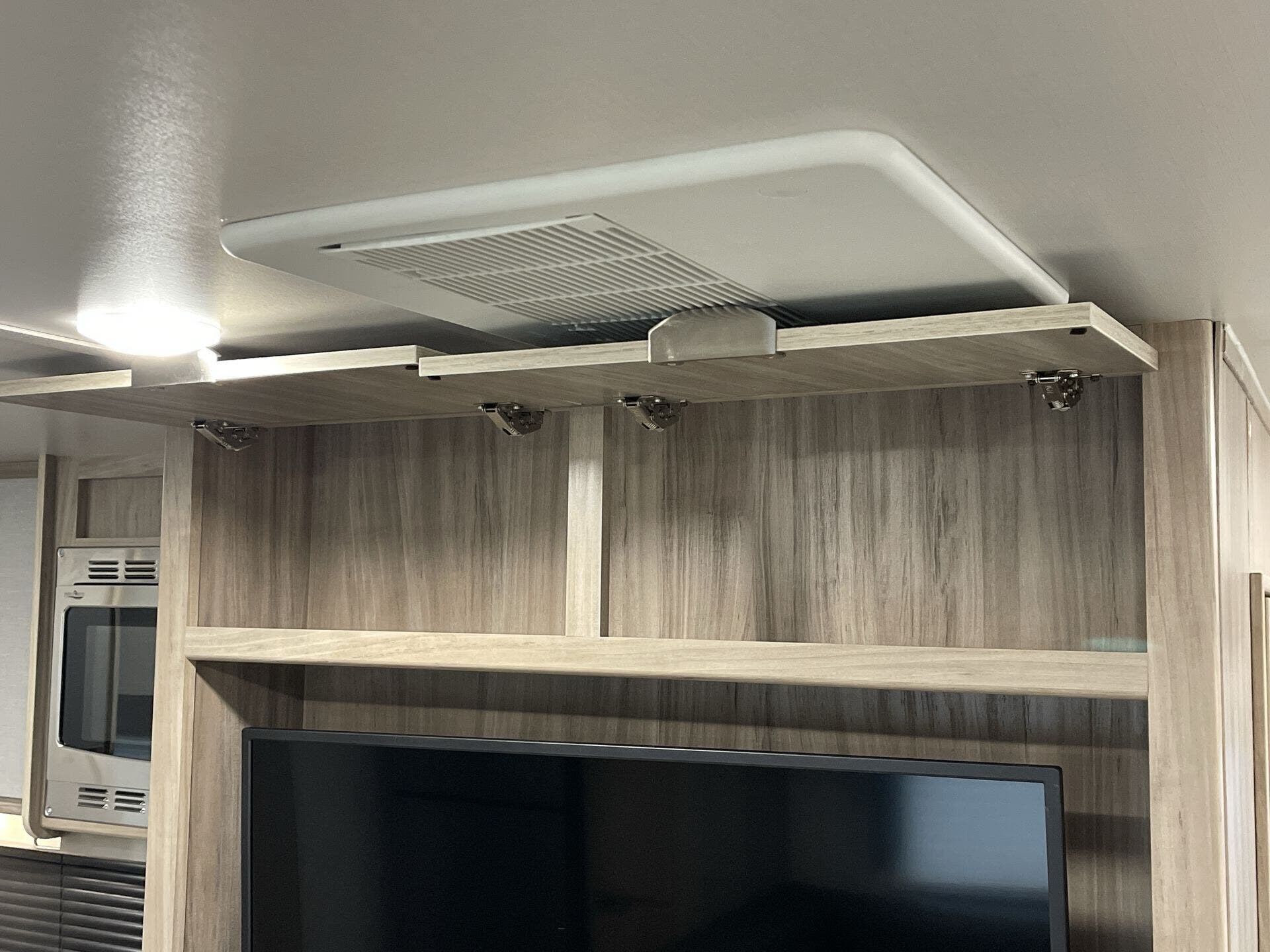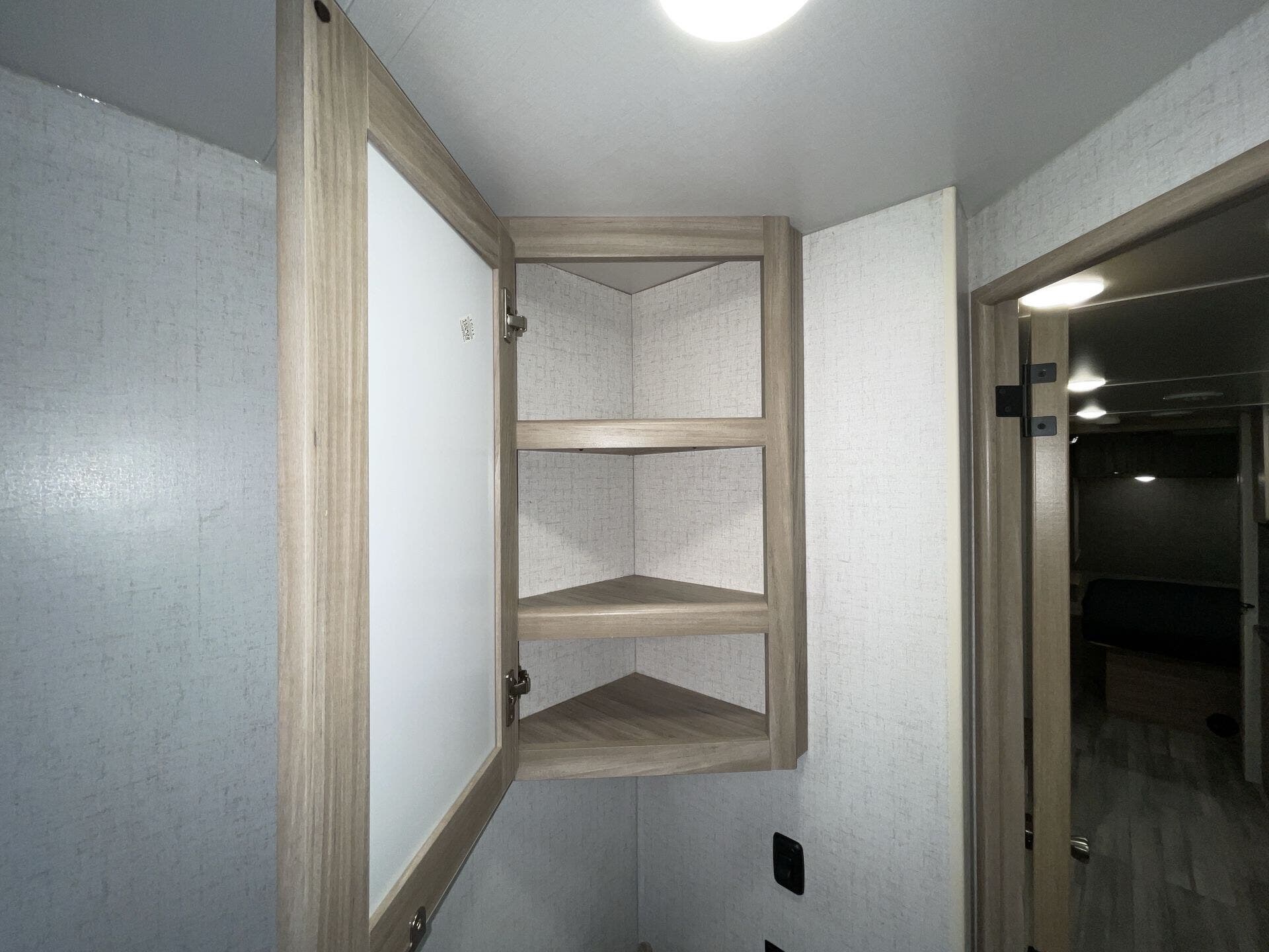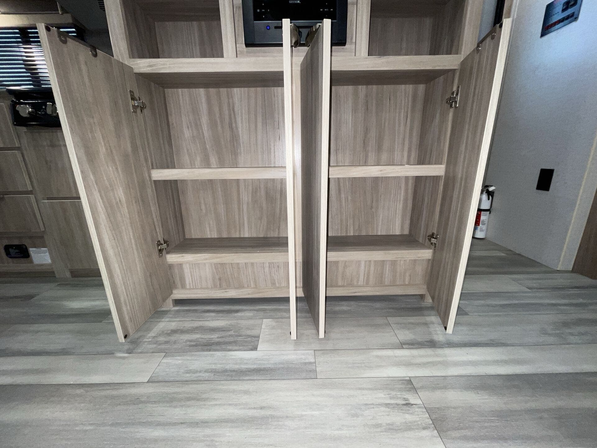 Bunk Beds, Kitchen Sink, Medicine Cabinet, Pantry, Queen Bed, Removable Table, Roof Vents, Toilet, Wardrobe(s)