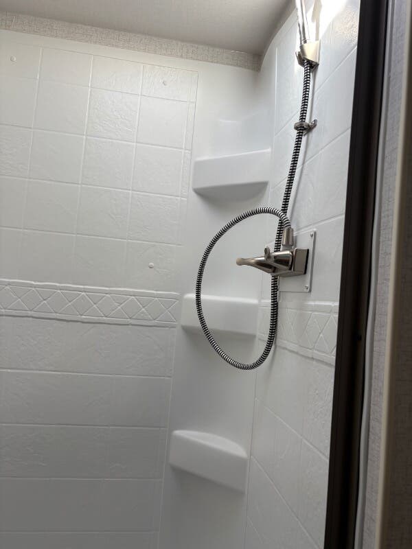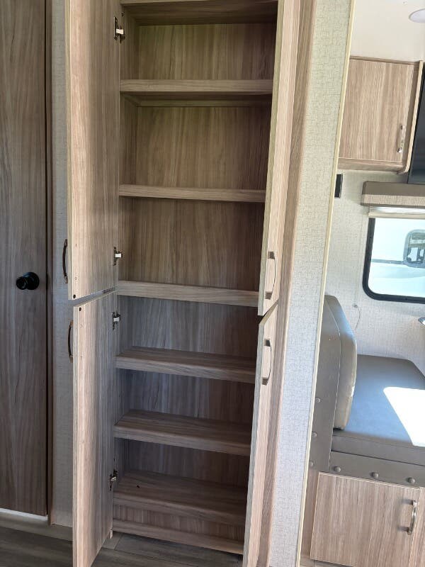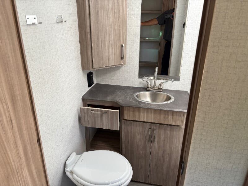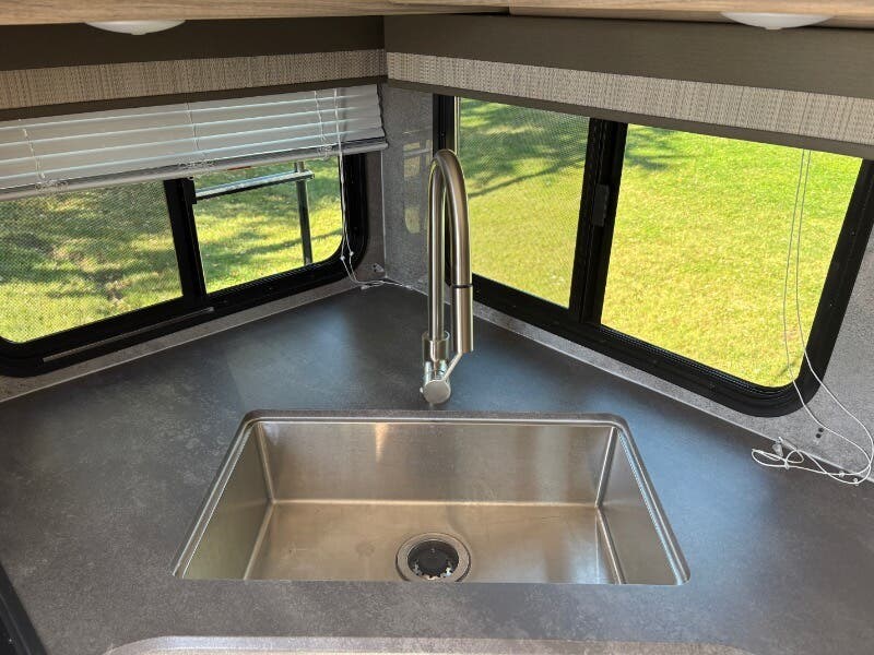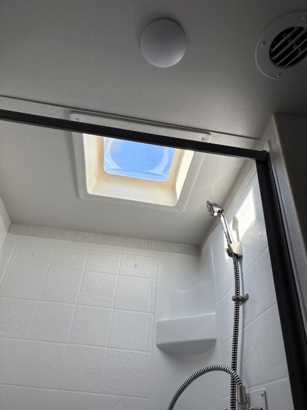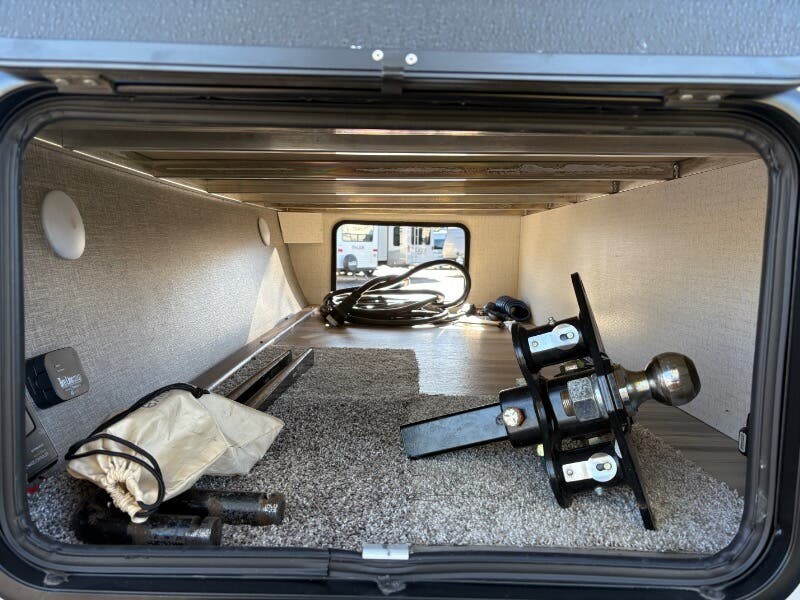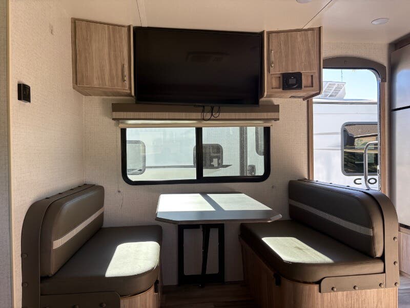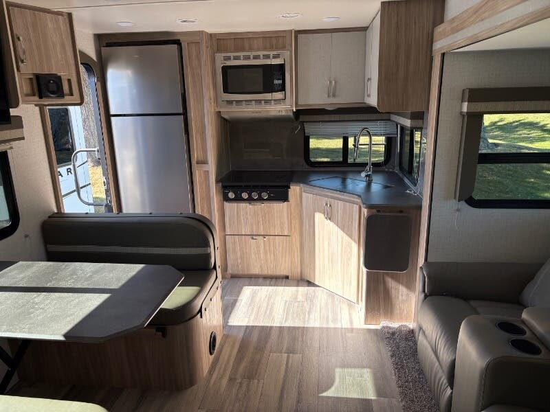 Features Include: LED Lighting, Tinted Windows, Night Shades Dining, Dinette, Stainless Steel Sink, Systems Center, Backup Camera Prep, USB Charging Ports, TV Antenna, WiFi Prep, LED TV, Nightstand, Wardrobe, Medicine Cabinet, Stainless Steel Sink, Skylight, Full Shower Surround, Toilet, Two 20# LP Bottles, 25k Furnace, 2nd AC Prep, 6-Gal DSI Hot Water, Roof Ladder, Power Tongue Jack, LED Exterior Lights