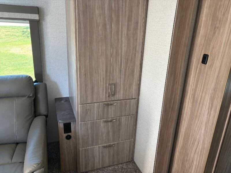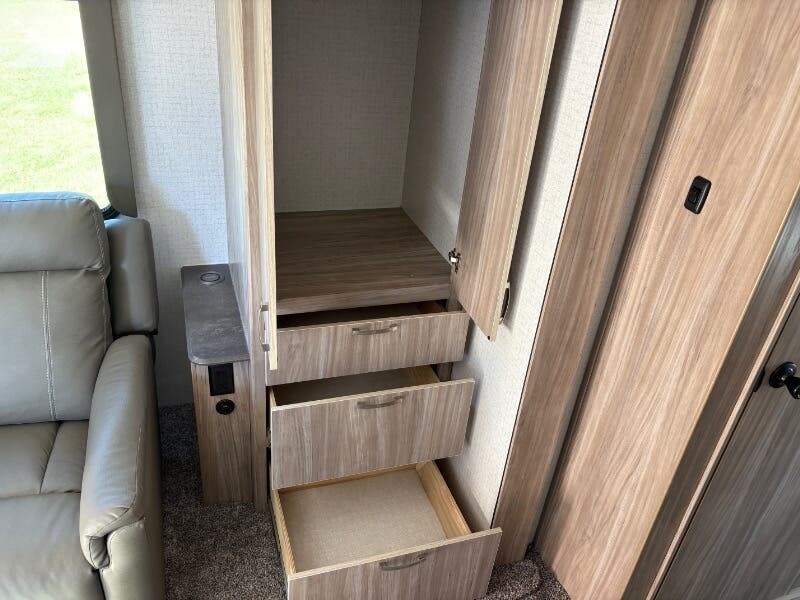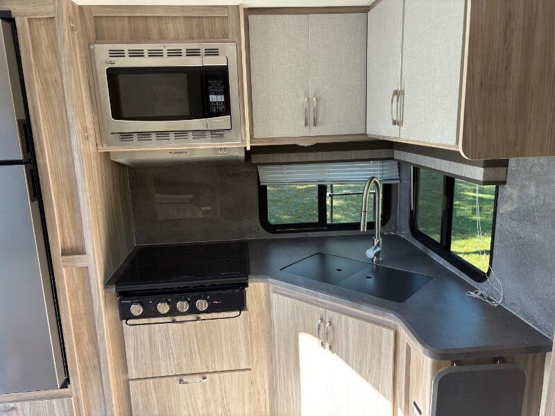 Introducing the 2022 Winnebago Minnie 2529RG, a versatile and well-equipped travel trailer designed to make your adventures comfortable and memorable. This travel trailer is built to provide all the comforts of home while on the road. Here's a closer look at its features: **Living Spaces** - Power Patio Awning with LED lighting for outdoor relaxation - Tinted Windows and Night Shades for privacy and comfort - LED Lighting throughout, ensuring a bright and welcoming interior **Dining Area** - Dinette for comfortable meals and gatherings - Stainless Steel Sink for convenient kitchen use - 12v 10cf Refrigerator to keep your food fresh - Recessed 3-Burner Cooktop with Back-Lit Knobs and Glass Cover - Convection Microwave for quick and efficient cooking **Electronics** - Systems Center for easy control of the trailer's features - Backup Camera Prep for safety and convenience - USB Charging Ports and Wireless Cell Phone Charger for device connectivity - TV Antenna, WiFi Prep, and an LED TV for entertainment - AM/FM/CD/DVD/USB/Bluetooth Stereo System with Outdoor Speakers for high-quality audio **Sleeping Arrangements** - Option between a Murphy or Queen Bed - Nightstand and Wardrobe for storage - Bedroom Vent for air circulation **Bathroom Features** - Medicine Cabinet for organizing personal items - Stainless Steel Sink and Skylight for a bright and fresh space - Full Shower Surround and Toilet with a Power Vent for convenience **Mechanical and Outdoor Features** - Roof Mount Solar Charger Prep for sustainable energy options - Two 20# LP Bottles for extended off-grid capabilities - 25k Furnace and 13.5k Low Profile Roof AC for climate control - 6-Gal DSI Hot Water and Outdoor Shower for comfort and functionality - Roof Ladder and Power Tongue Jack for ease of use - LED Exterior Lights for nighttime visibility and safety **Construction** - NGX Engineered Chassis with Aluminum Wheel Assemblies for durability - Exterior TG Plywood Decking and Welded Aluminum Tube Sidewalls - Radiant Foil Insulation and Azdel Composite Fiberglass Exterior for thermal efficiency - Gelcoat Fiberglass Front Cap and Lower Front Diamond Plate for protection - Seamless TPO Roof Membrane and Enclosed Heated Holding Tanks for robustness The 2022 Winnebago Minnie 2529RG is crafted to deliver a seamless travel experience with its thoughtful features and solid build. Perfect for those who want a combination of functionality, comfort, and style while exploring the road. ???