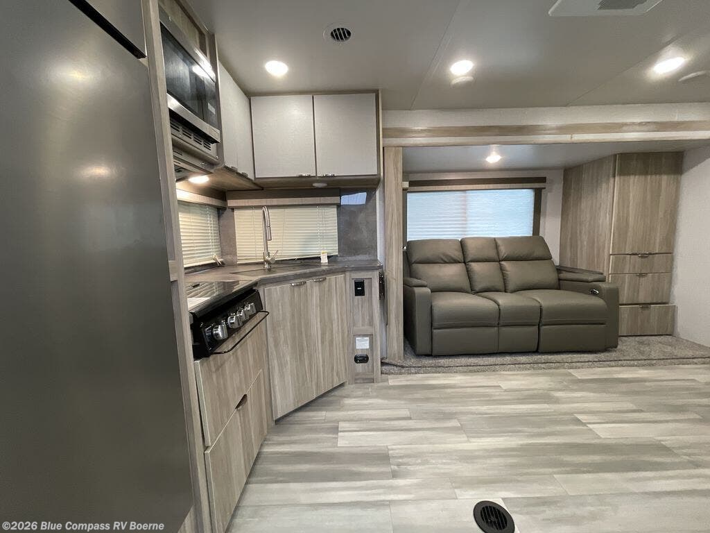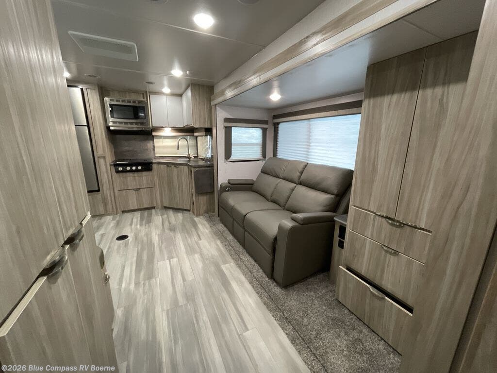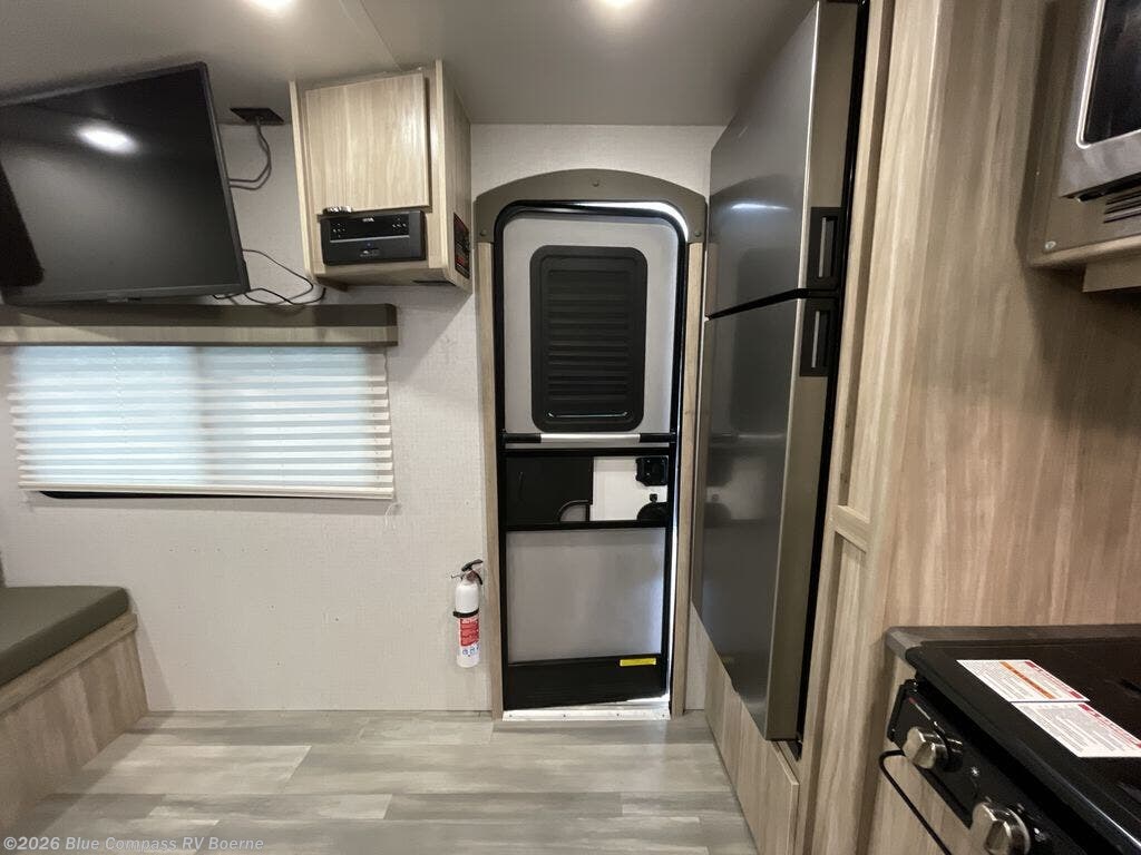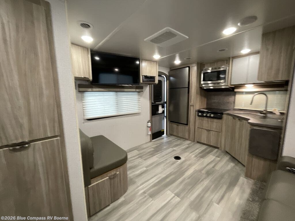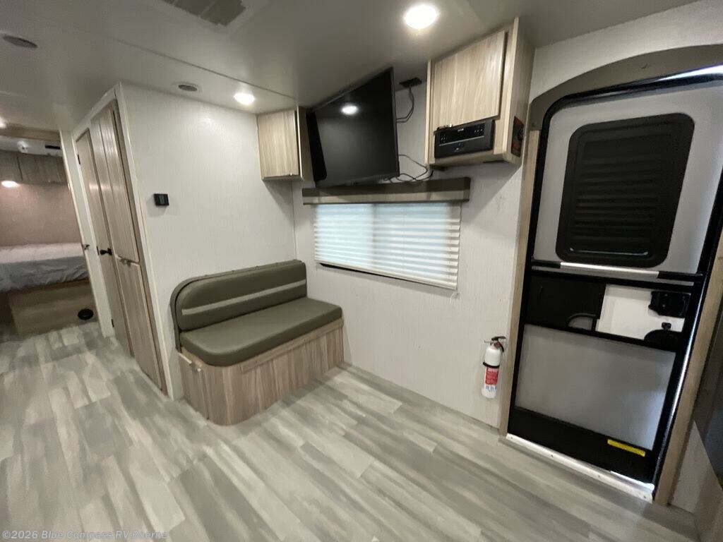 This travel trailer will feel just like home with its front private bedroom with its own exterior entry door, a full bath, plus a rear kitchen to cook up your best meals. Once lunch is made, you can dine at the booth dinette, or take your plate outdoors to sit under the 18' power awning with LED lights. The large slide out will provide more space to let the dog nap on the floor, and there is an LED TV to watch a movie on those rainy camp days. You'll also find plenty of storage space throughout this travel trailer for all your belongings, and exterior storage for camp gear!
