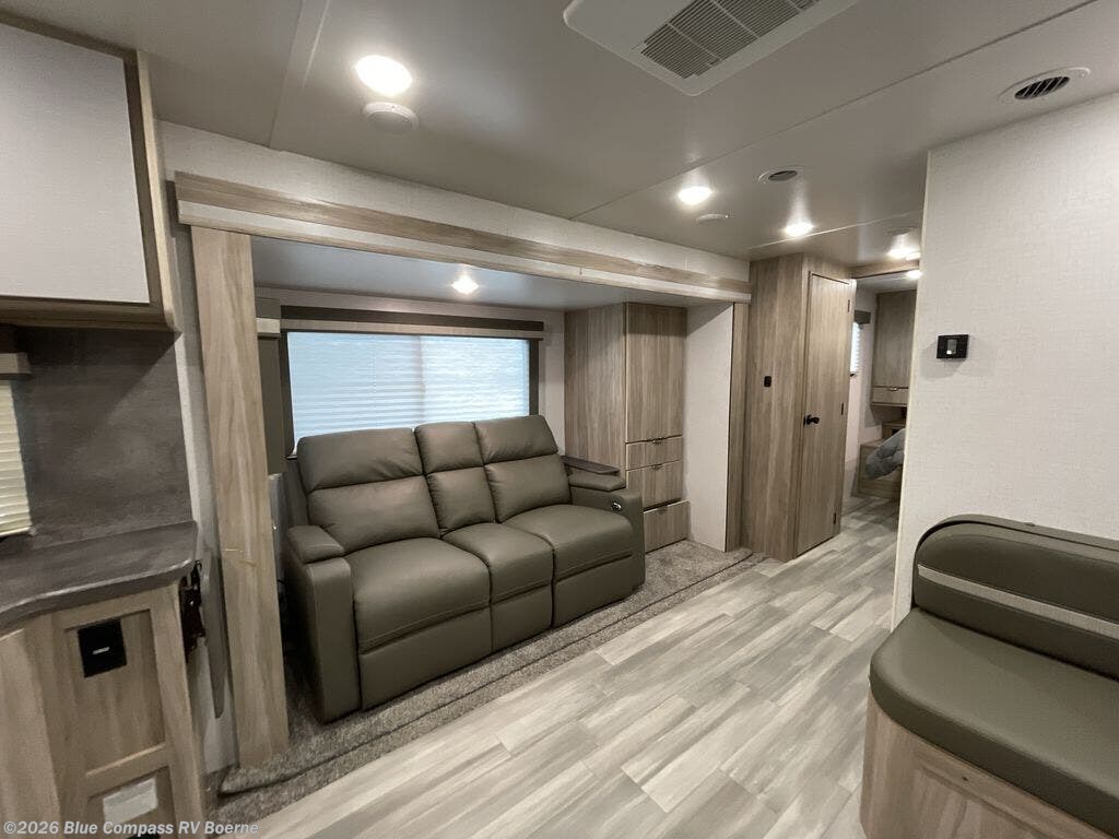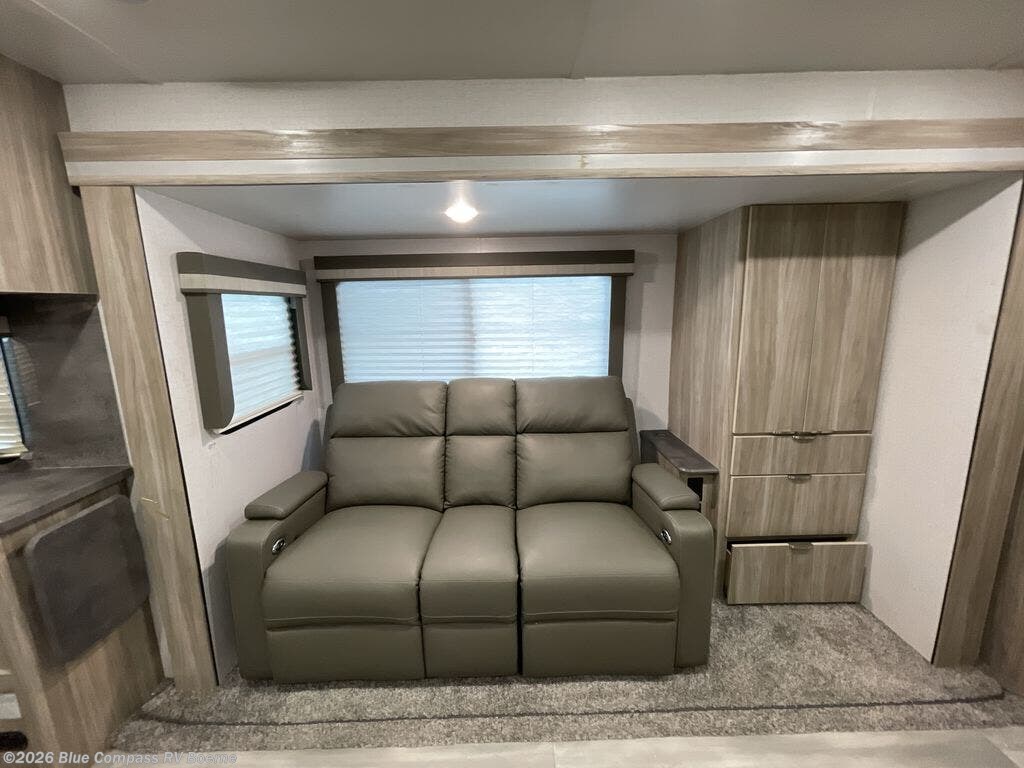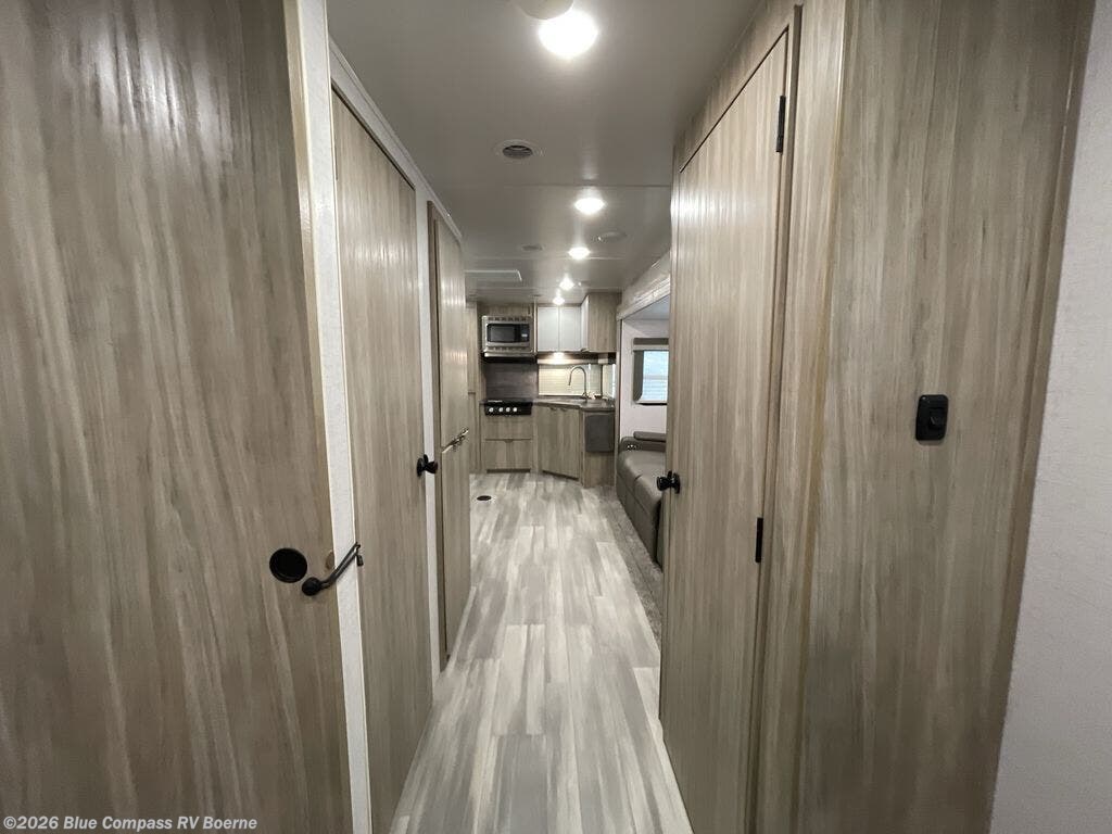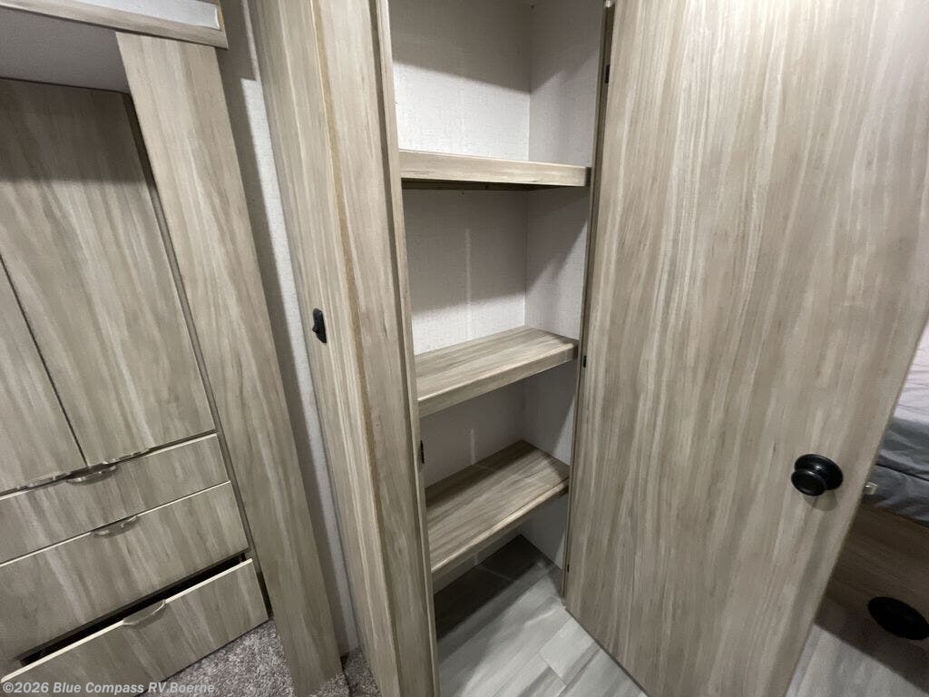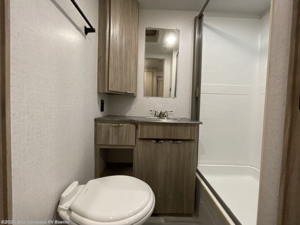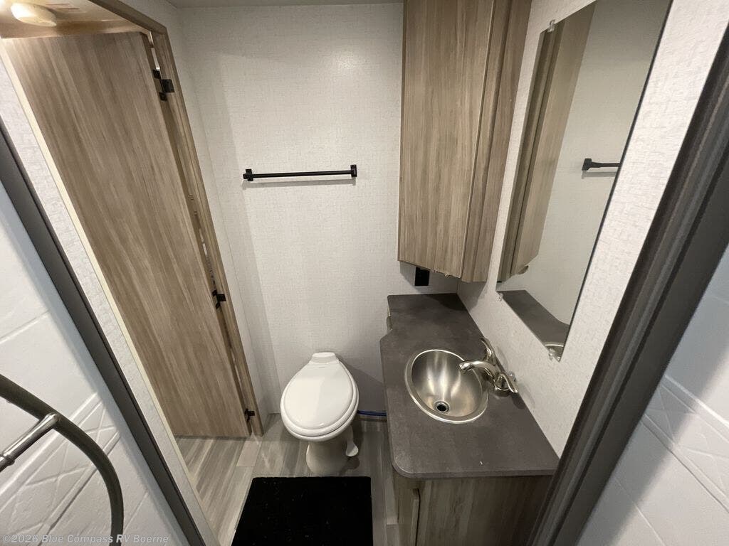This travel trailer will feel just like home with its front private bedroom with its own exterior entry door, a full bath, plus a rear kitchen to cook up your best meals. Once lunch is made, you can dine at the booth dinette, or take your plate outdoors to sit under the 18' power awning with LED lights. The large slide out will provide more space to let the dog nap on the floor, and there is an LED TV to watch a movie on those rainy camp days. You'll also find plenty of storage space throughout this travel trailer for all your belongings, and exterior storage for camp gear!