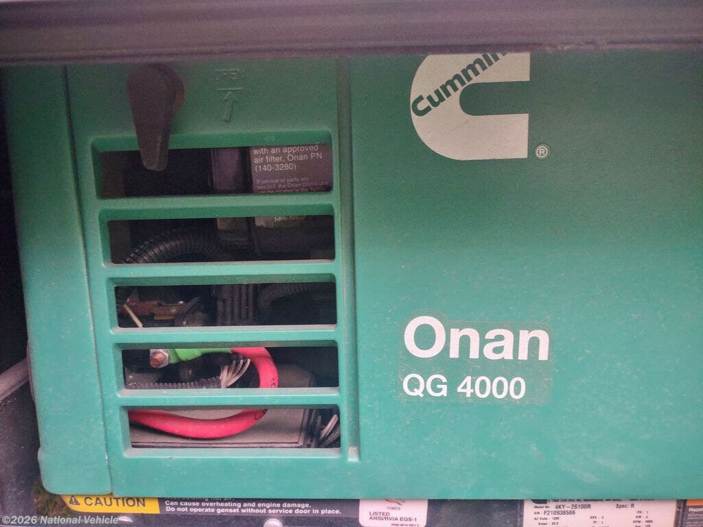 Features two slide-outs with toppers, one power-retractable awning, new upgraded tires and spare (replaced the foreign tires with Cooper tires for safety), and a powerful ONAN 4kW generator for off-grid comfort. Stay comfortable year-round with one A/C unit, furnace, and cab A/C.
