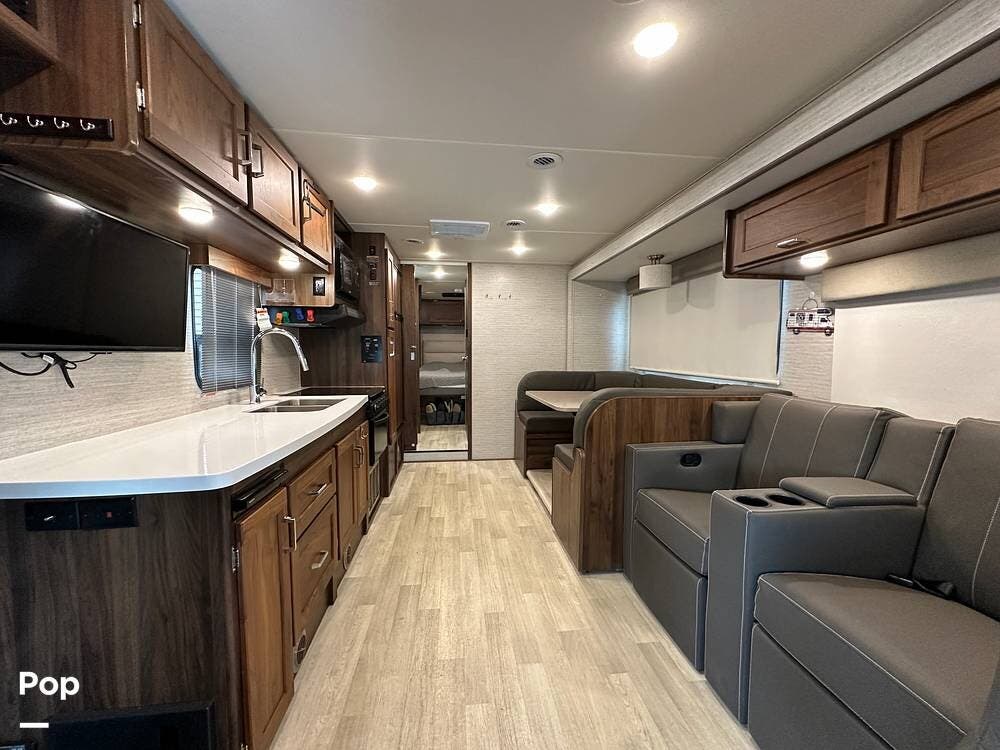 This RV comes with hydraulic leveling jacks, making it easy to set up camp on any terrain. The air conditioning unit ensures a comfortable environment, while the ample storage space lets you bring all your essentials along. The Minnie Winnie 31K is not just about functionality; it's also about style. The interior decor is modern and inviting.