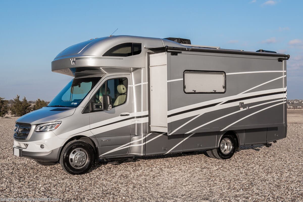 Used Winnebago RV for sale – 2022 Winnebago Navion 24D is approximately 25’ 5” in length with 17,409 Miles, 1 slide and features aluminum wheels, full body paint, hydraulic leveling system, diesel generator, Mercedes-Benz chassis, Mercedes-Benz diesel engine, tilt/telescoping steering wheel, smart wheel, tire monitoring system, power pedals, keyless entry, power windows, patio awning, LED running lights, black tank flush, water filtration system, exterior shower, clear paint mask, ladder, solar, lithium batteries, dual pane windows, convection microwave, overhead loft, theater seats and much more. For additional details on this unit and our entire inventory including brochures, window sticker, videos, photos, reviews & testimonials as well as additional information about Motor Home Specialist and our manufacturers please visit us at or call 800-335-6054 for our Texas location or 334-288-0331 for our Alabama location. At Motor Home Specialist, we DO NOT charge any prep or orientation fees like you will find at other dealerships. Read Thousands upon Thousands of 5-Star Reviews at and See What They Had to Say About Their Experience at Motor Home Specialist.