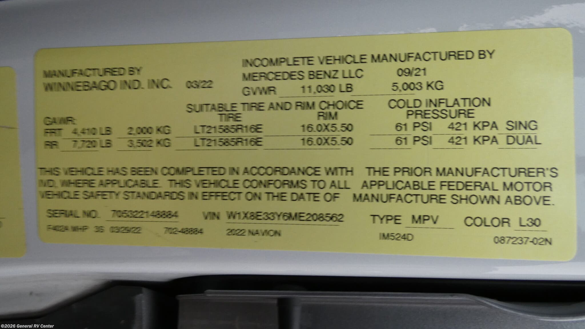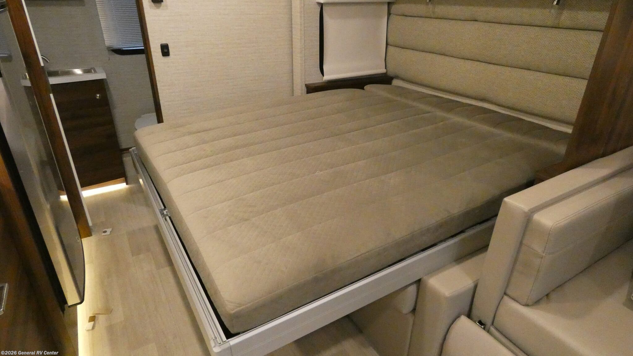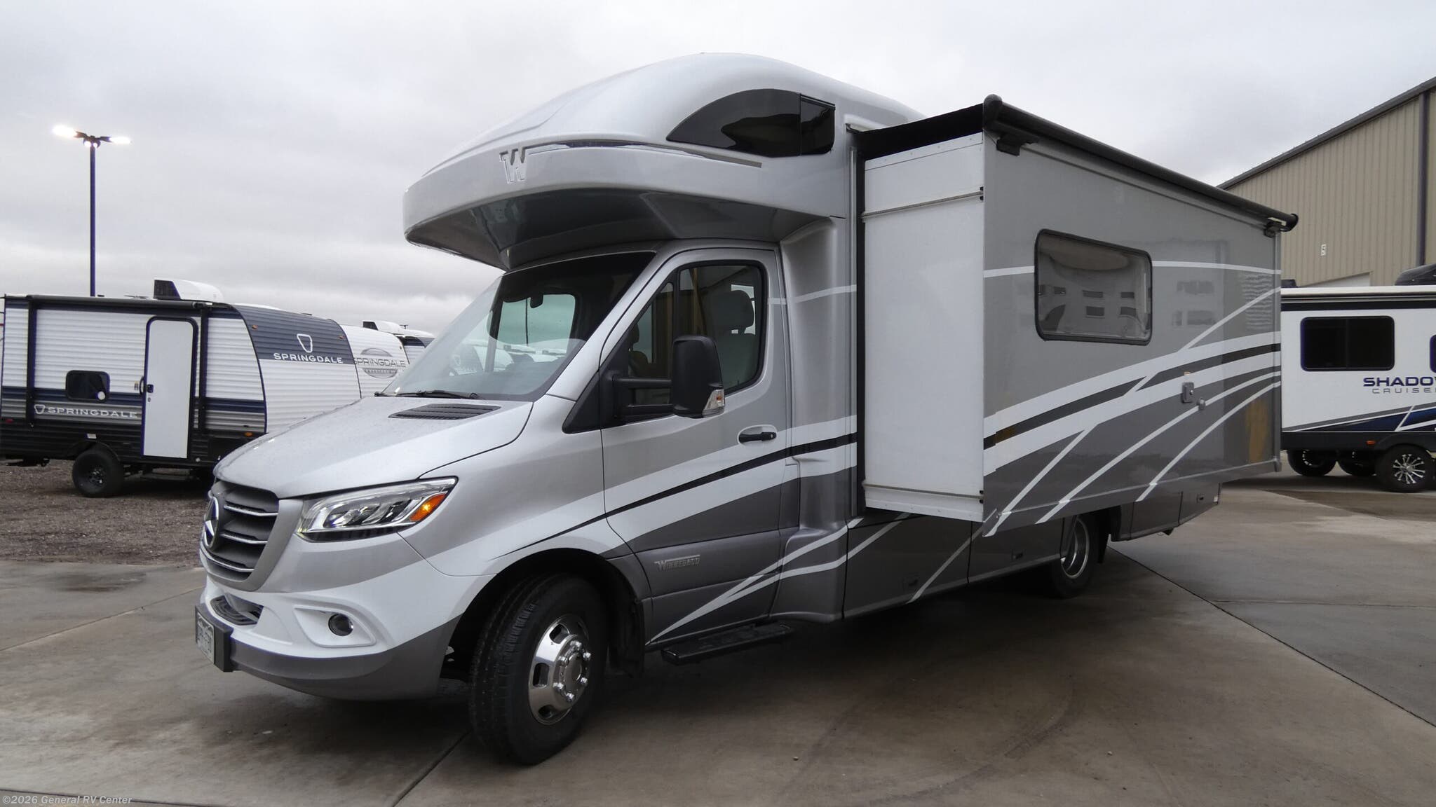 Experience the perfect blend of luxury and functionality with the 2022 Winnebago Navion 24D. This remarkable RV is built on the reliable Mercedes-Benz Sprinter 3500 chassis, powered by a robust V6 engine that delivers 188 horsepower and 325 lb-ft of torque. With its sleek design and impressive 25.5-foot length, the Navion 24D offers a spacious interior that comfortably sleeps up to six people. The innovative floorplan features a versatile Murphy+ bed, a cozy cabover bunk, and a convertible U-shaped dinette, ensuring everyone has a comfortable place to rest. Inside, you'll find a thoughtfully designed center kitchen equipped with a full-size electric refrigerator, convection cooking, and a two-burner cooktop, making meal prep a breeze. The front living area is perfect for relaxation, featuring a sofa and a pedestal table that can be moved to suit your needs. Enjoy the convenience of a rear bath with a sliding door and a spacious shower. The Navion 24D also boasts a 16-foot powered retractable awning, perfect for enjoying outdoor activities in comfort and style. Whether you're embarking on a cross-country adventure or a weekend getaway, the Winnebago Navion 24D is your ideal travel companion. For more details or to see this incredible RV in person, visit your nearest General RV dealership location.