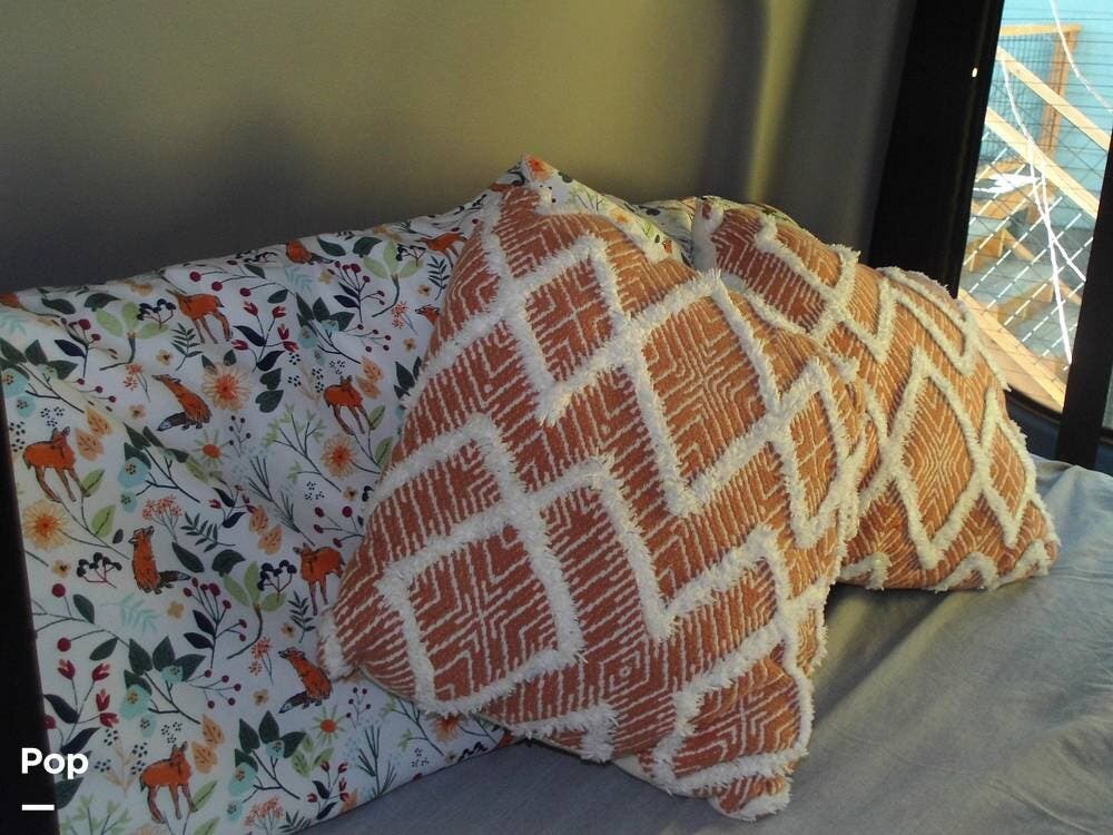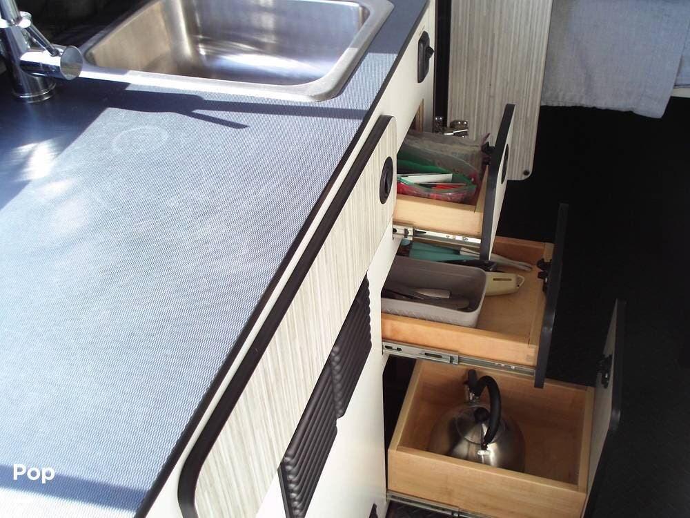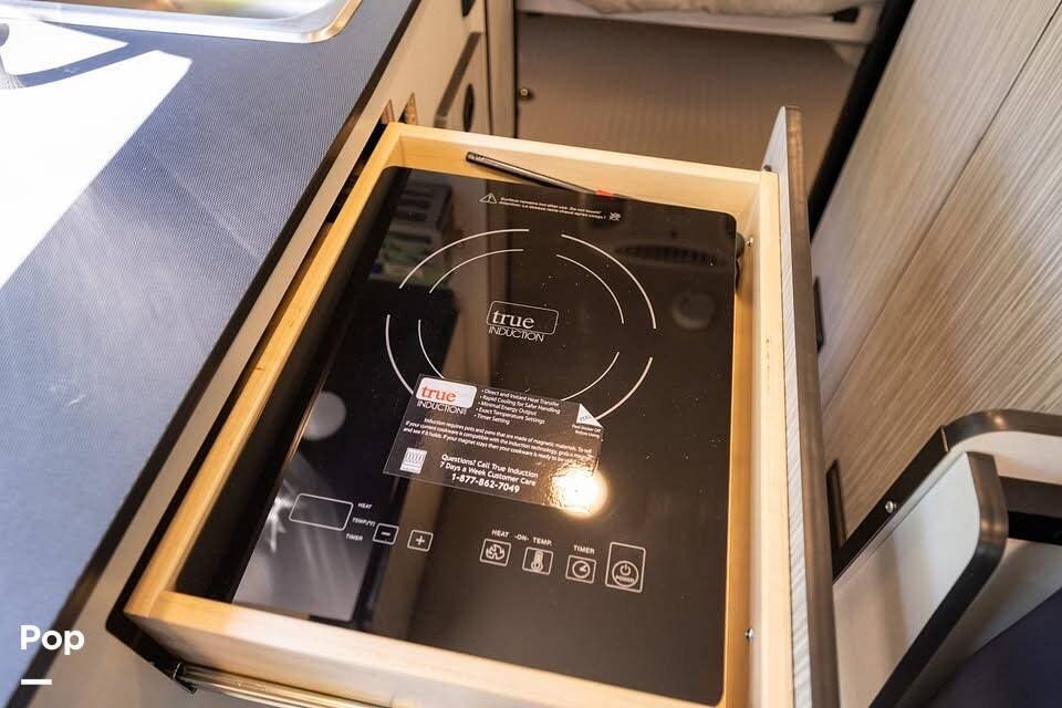Step inside, and you'll discover a world of luxury and innovation. The Revel 44E boasts a sleek, modern interior outfitted with premium materials and intuitive technology. Its efficient layout maximizes space, offering a fully equipped galley, a versatile power lift bed, and an advanced lithium-ion energy solar system to keep you powered off-grid. With ample storage for gear and smart climate control, you'll stay comfortable no matter where your adventures take you.