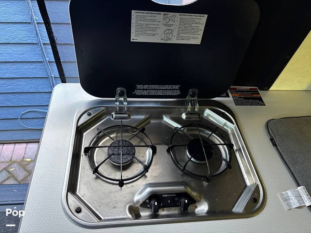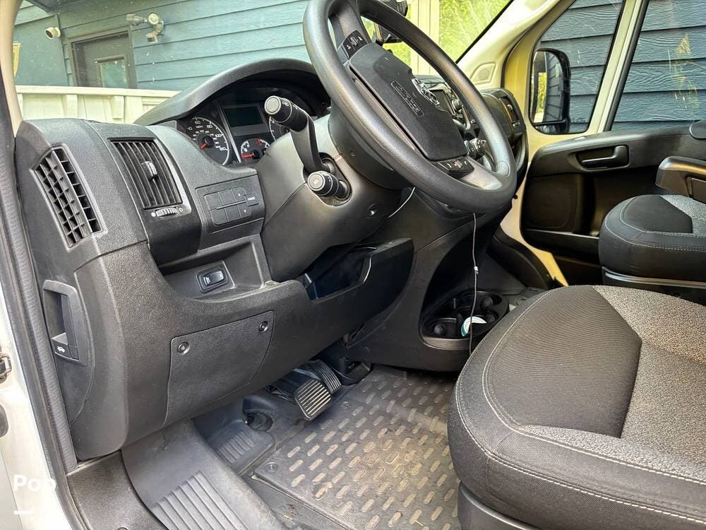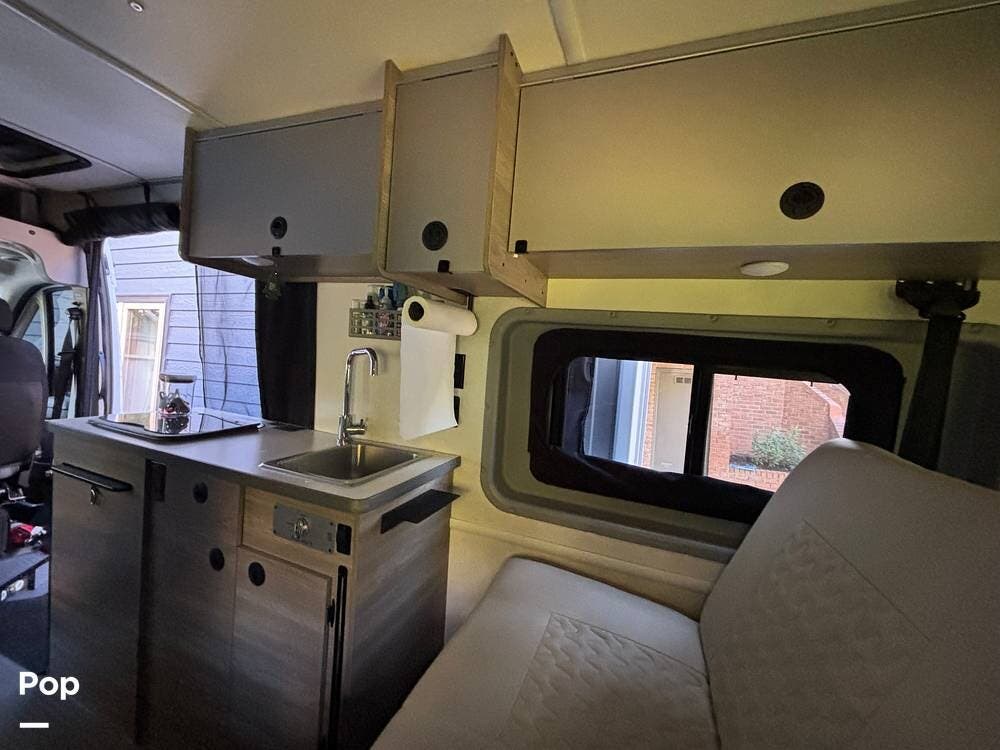 The 2022 Solis 59P is built on a Ram Promaster chassis and powered by a 3.6L V6 engine with 280 horsepower. It's designed for travelers who want mobility without giving up key comforts. Inside, the dinette converts to a sleeper and is paired with a 2-burner stove, mini fridge, cooktop cover, kitchen sink, and cabinets.