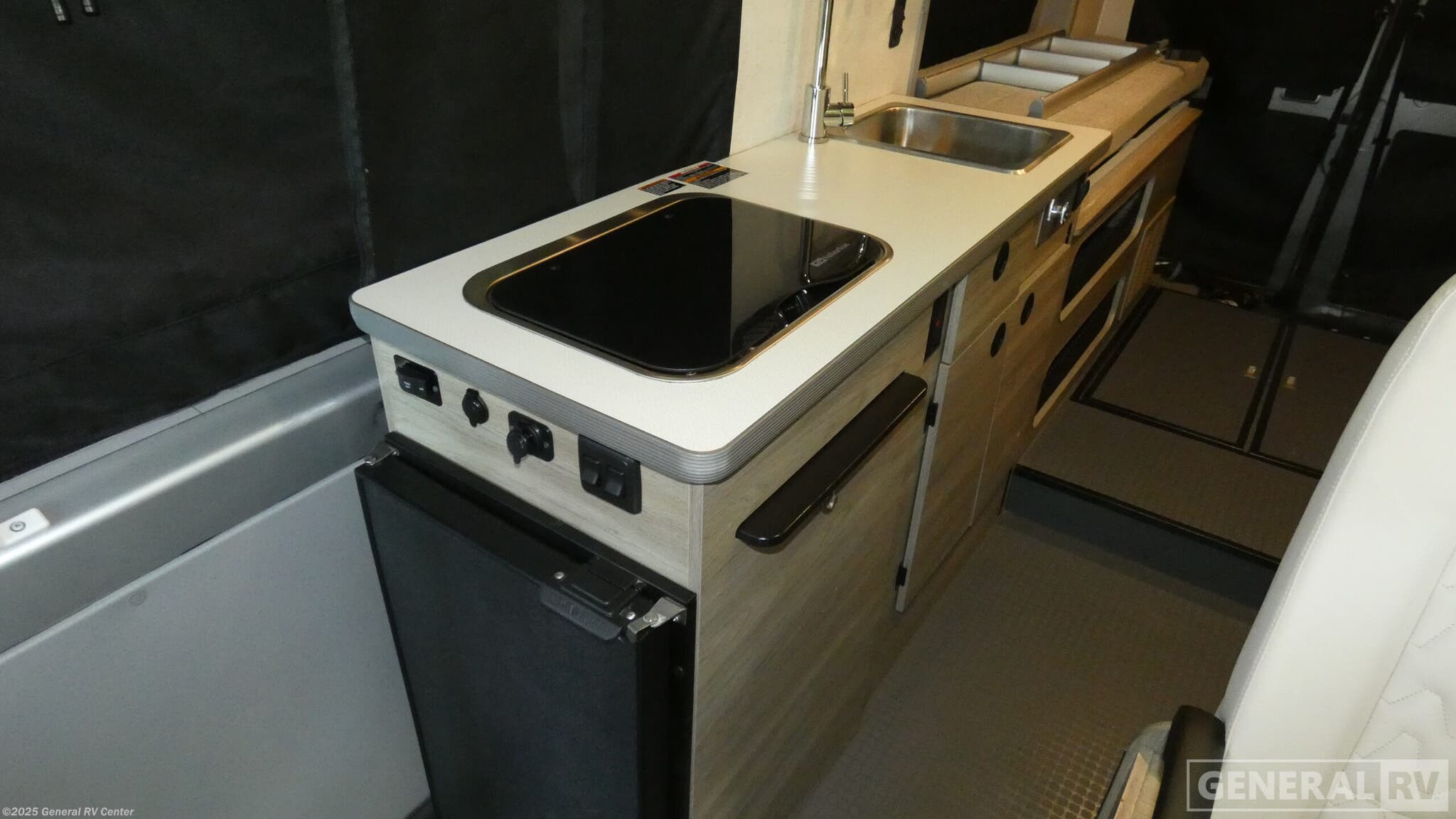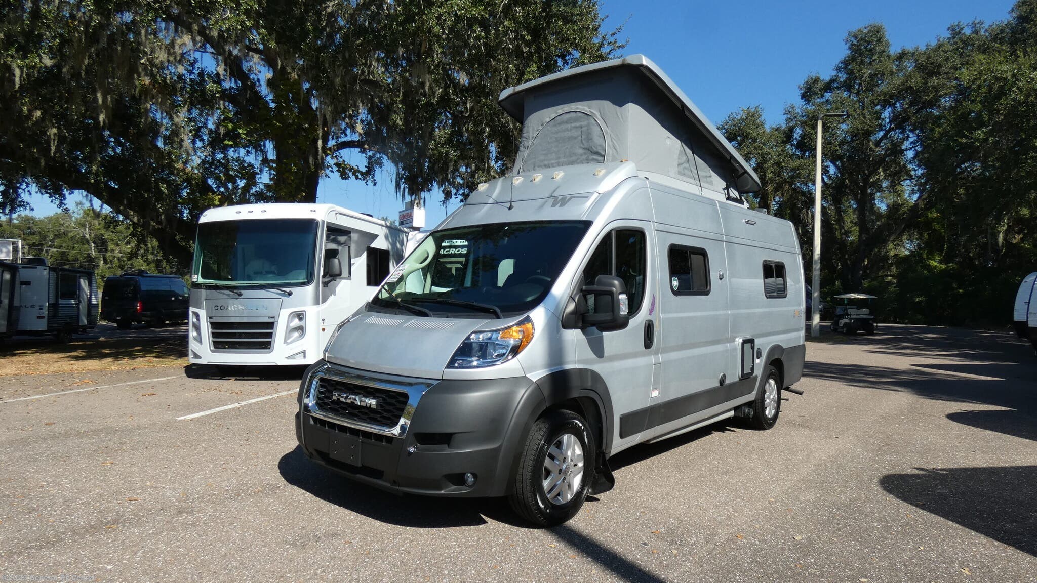 Winnebago Solis Class B gas motorhome 59PX highlights: Cummins Onan Gas Generator Murphy+ Bed Flexible Showerhead Extended Wheelbase Swivel Captain's Seats Below Floor Storage This camper van with an L-track storage system is perfect for those needing more storage space for their hiking and biking gear. You can stay powered up with the Cummins Onan QG 2800i gas generator, and there is a Coleman Mach 10NDQ A/C with directional vents that will allow you to come inside to cool off after a trail ride. A Murphy+ bed comes standard, and any guests that tag along can sleep in the pop-top sleeping area! You'll find the wet bath to come in handy when you want to clean up, and the dinette seating with a removable pedestal table will provide a place to enjoy your dinner at. Each Solis Class B gas motorhome by Winnebago sits upon a fuel-efficient Ram ProMaster chassis with a 3.6L V6 engine to power your adventures. You will love the cab conveniences that make each trip enjoyable, like the digital review mirror, the radio/review monitor system touchscreen, and the crosswind assist to keep you steady on the road. Some of the hassle-free amenities you will appreciate are the exterior wash station, the Eco-Hot water system, and the water center control panel located inside the right rear door. Head indoors to find heavy-duty vinyl flooring throughout, a laminate countertop and a stainless steel sink in the galley, plus tinted coach windows for added privacy. The Solis also features off-grid capabilities with its two deep-cycle Group 31 batteries and 220-watt flexible surface solar panel with a controller. Adventures awaits in the Solis Class B gas motorhome!