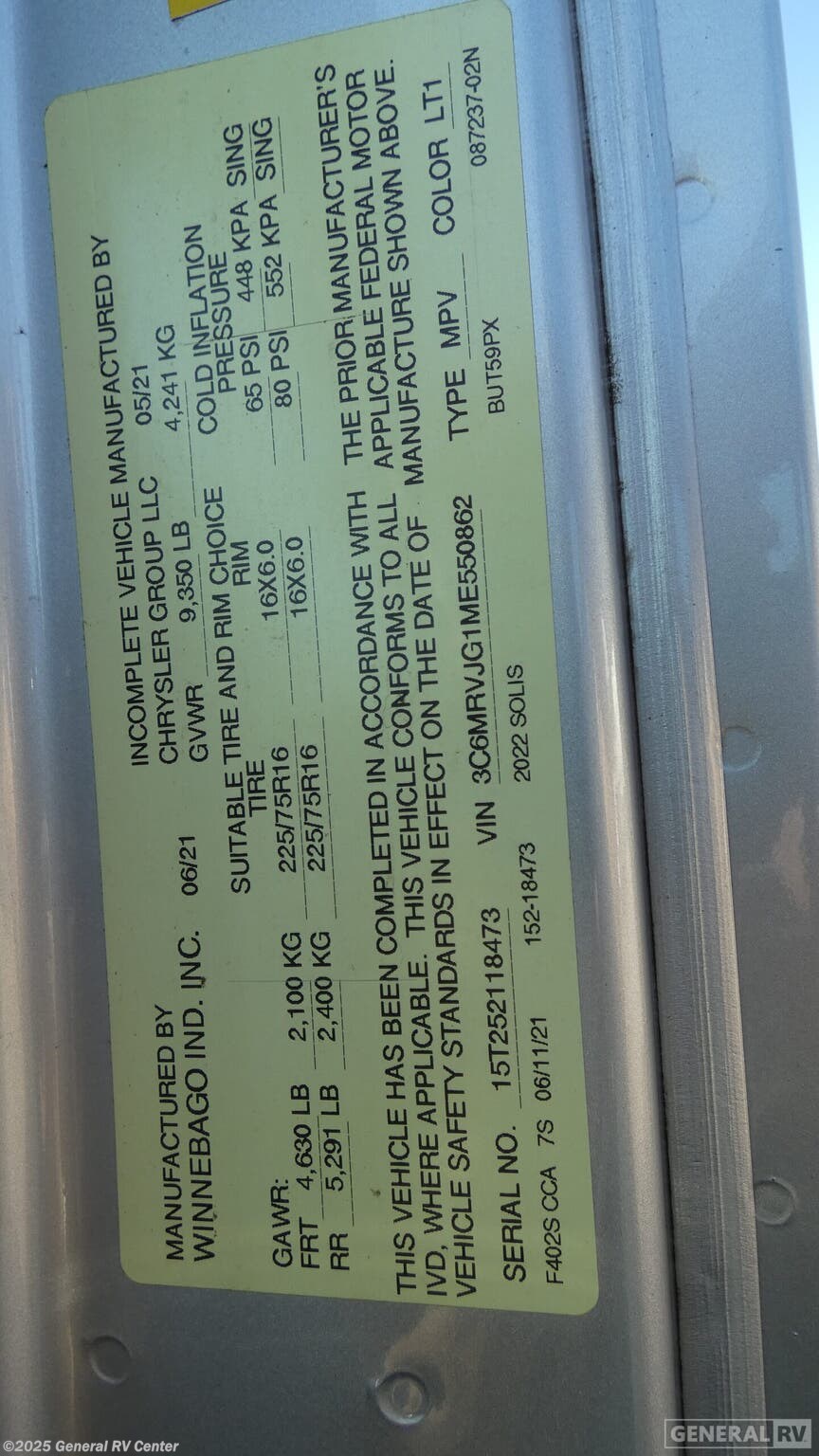 Request More Info on this 2022 Winnebago Solis 59PX Offered for sale by General RV Center
