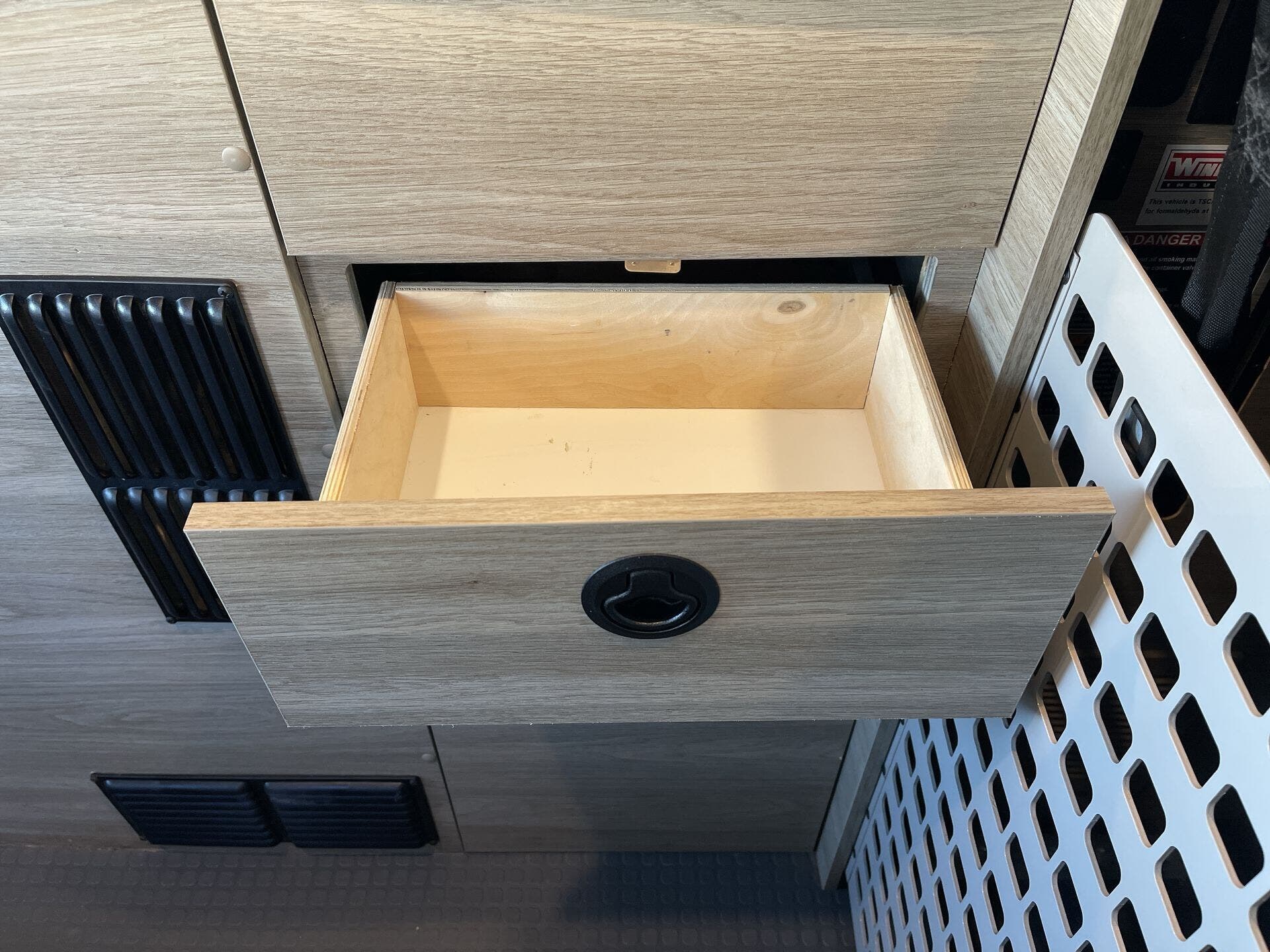 It’s set up well for camping off-grid, with solar capability and good tank sizes for a van this size. Plus, the insulation and heating make it usable even when the weather isn’t perfect.