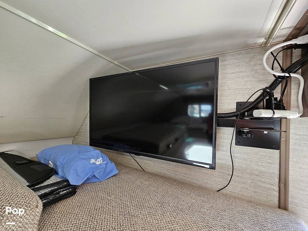 The Spirit 22M has a 32" HDTV with a DVD player, Bluetooth audio system, and Apple CarPlay/Android Auto compatibility for entertainment and connectivity.