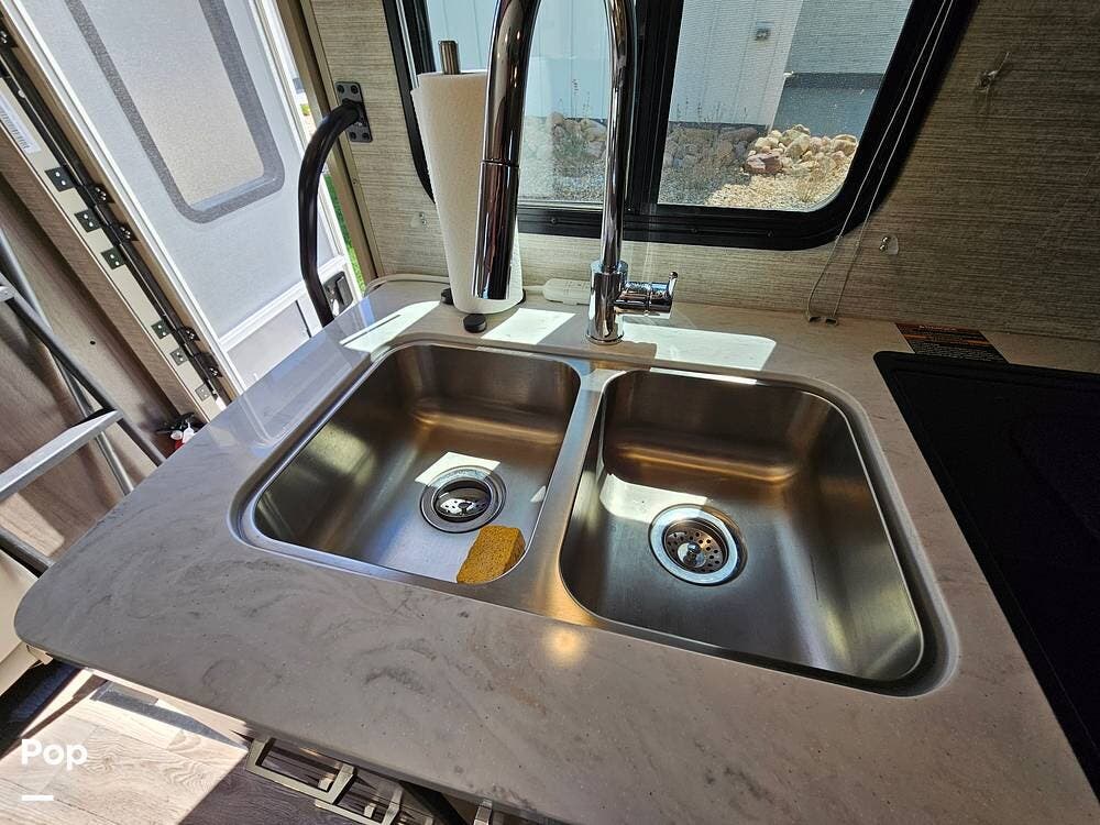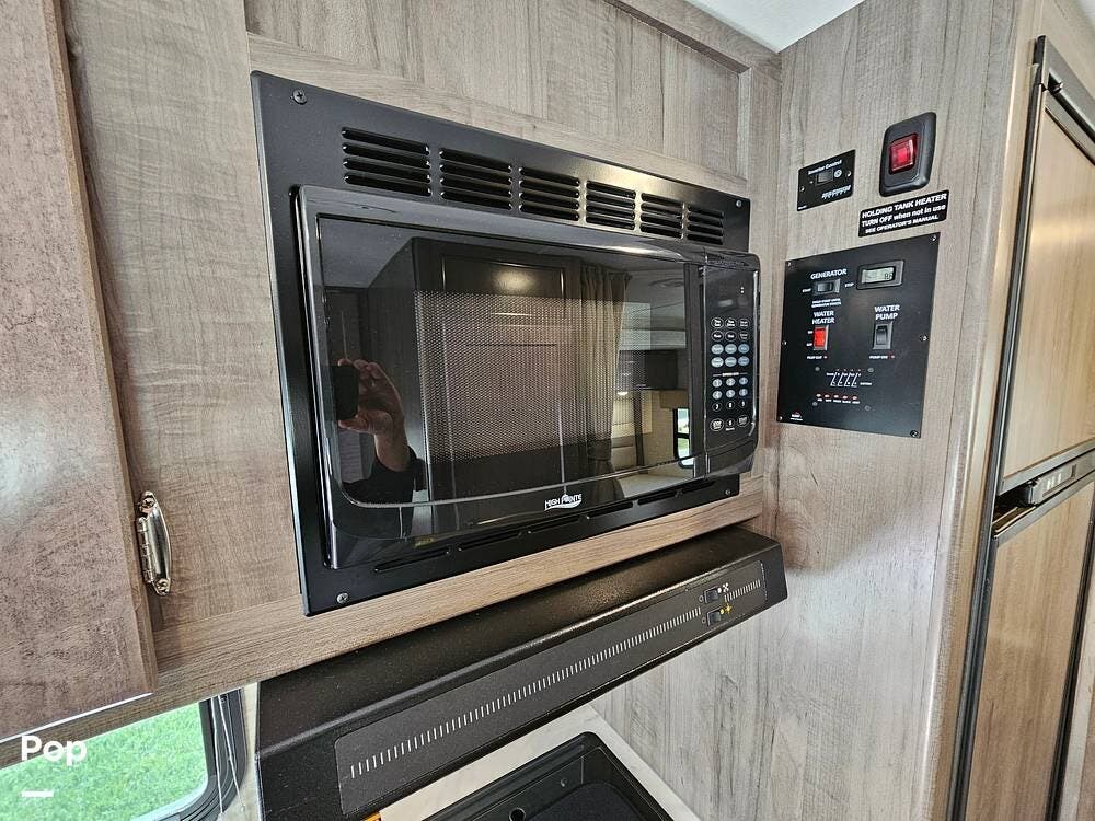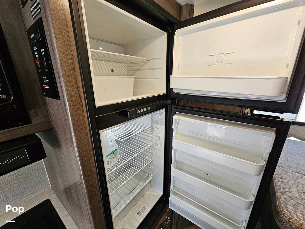 Inside, the Spirit 22M boasts a U-shaped dinette, a well-equipped galley with a 3-burner range, microwave, and a 6.3 cu. ft. refrigerator, making meal preparation a breeze.