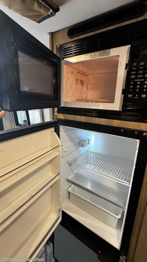 Inside the cab, you'll find a multimedia monitor system for entertainment and navigation, as well as power features and integrated camera systems for added convenience and safety. The coach features a functional galley kitchen with a microwave, propane cooktop, sink, refrigerator/freezer, and a pull-out countertop for added prep space.