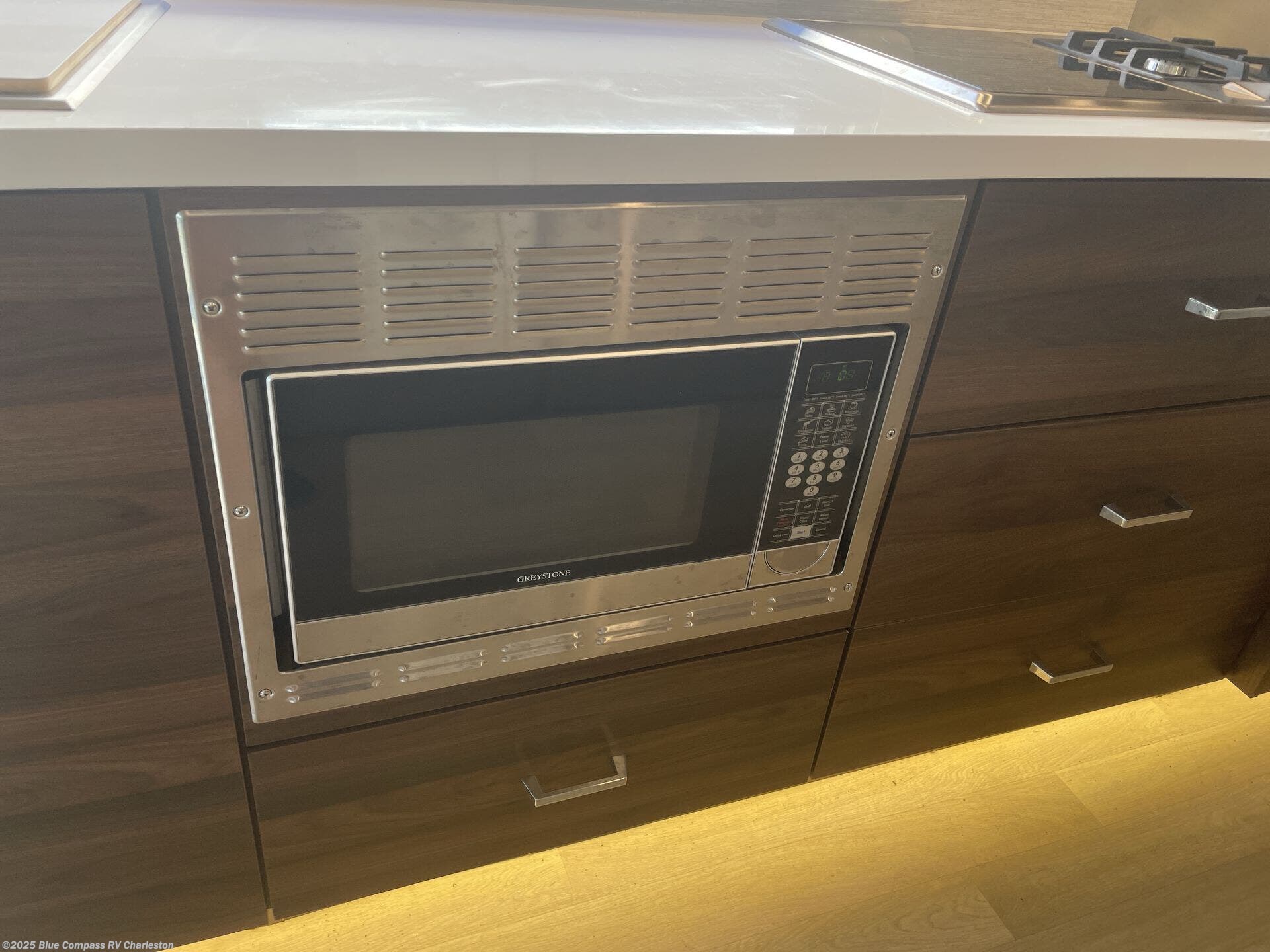 A couple or family will enjoy the look of the interior each time they take this View Class C diesel motorhome on the road. With the curved cabinets, the lighted soft-close galley drawers, and the sprung-cushion dinette and sofa seats, there will surely be a favorite feature for everyone. You will be able to easily set up the queen Murphy+ bed when it's time for bedtime while the kids sleep on the bunk above the cab or the U-shaped dinette. You might like to add the theater seating option with swivel tables if you don't need that extra sleeping space. Everyone can get cleaned up in the full rear bathroom that has a space-saving sliding door before making meals with full kitchen amenities including a convection microwave/oven.