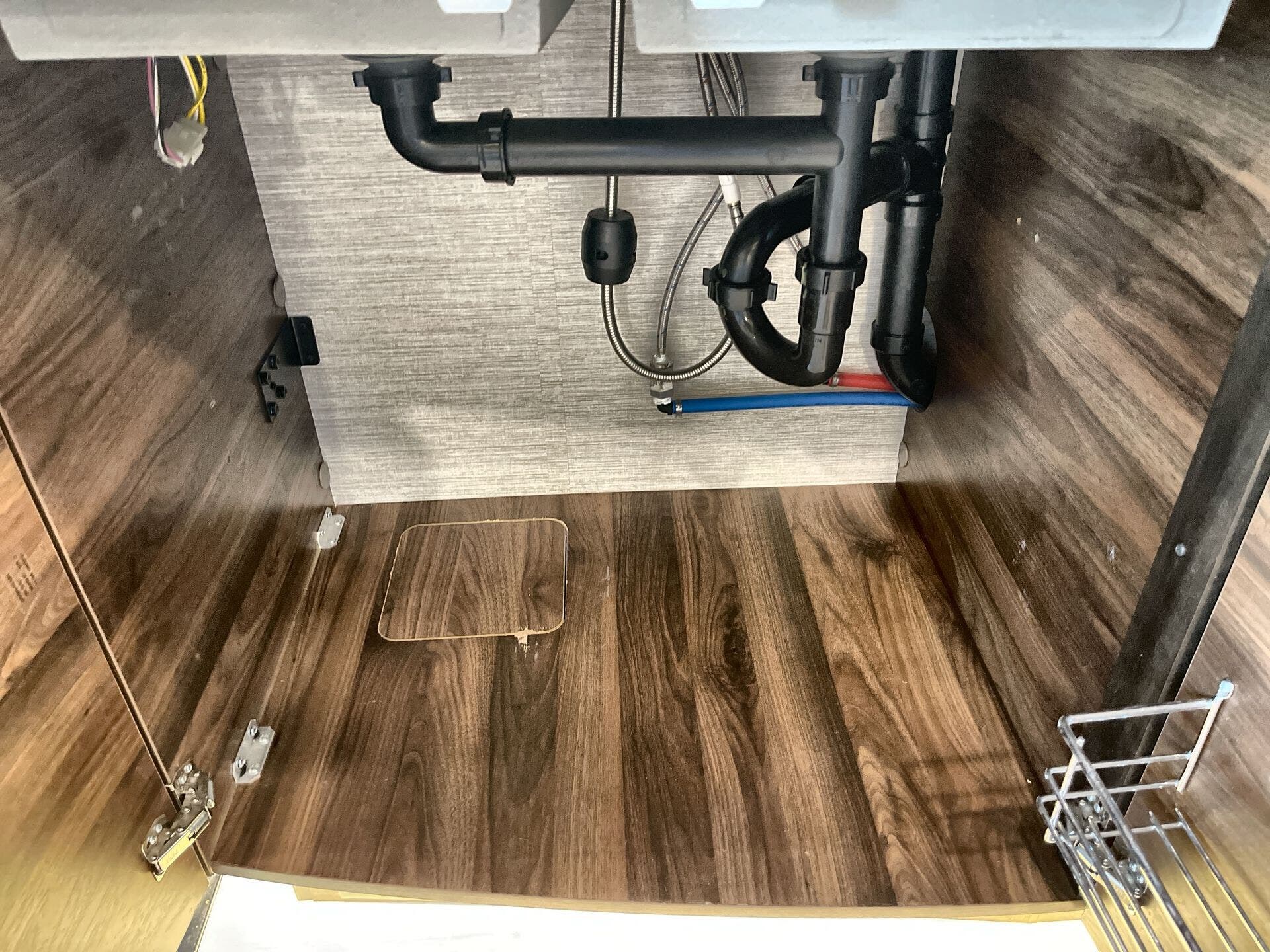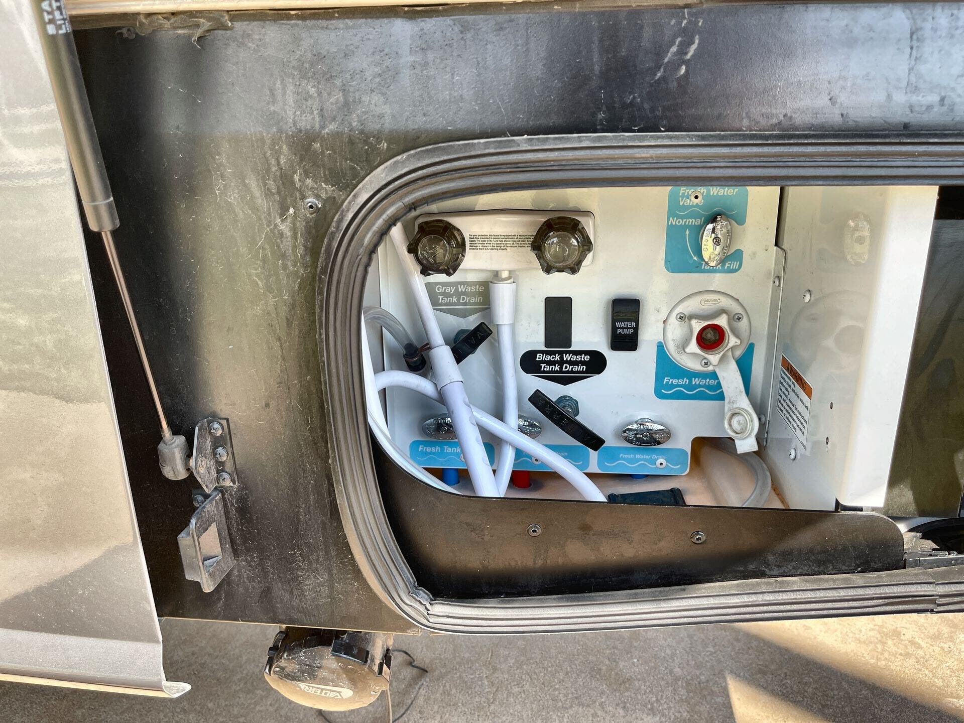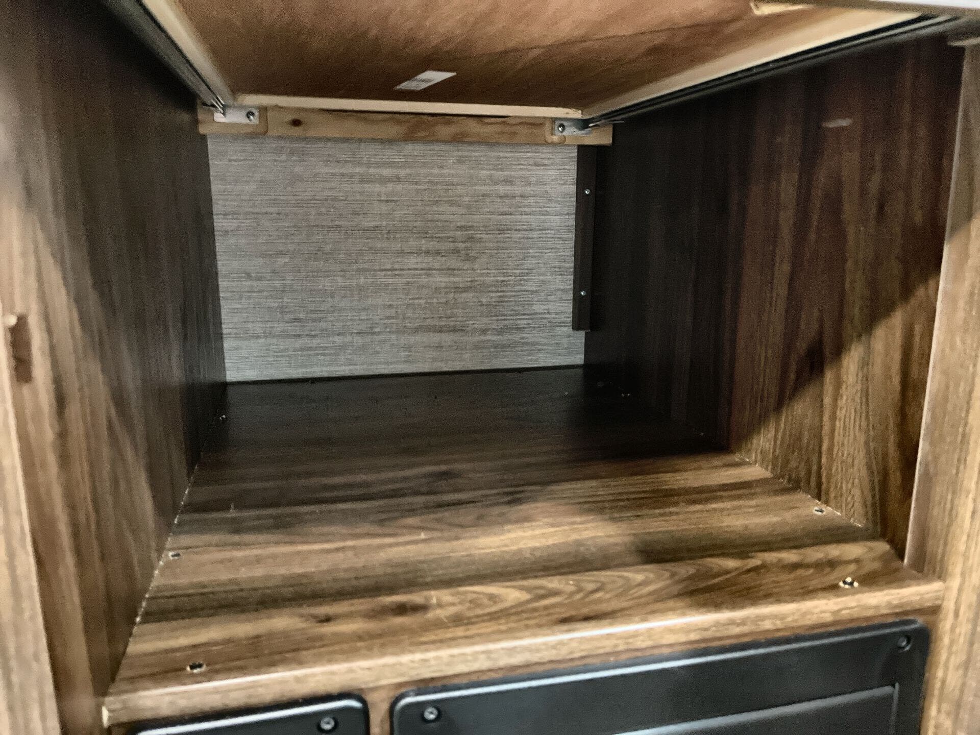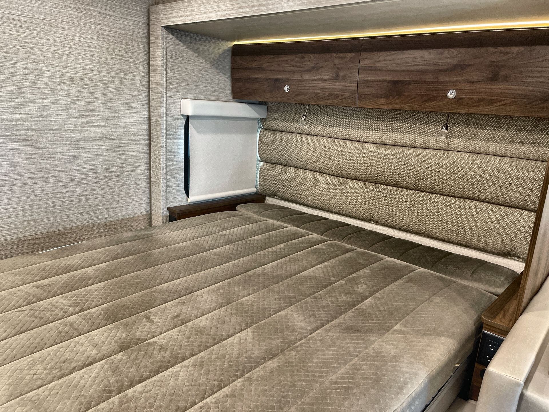Inside, you’ll find a well-equipped galley with a convection microwave, refrigerator, stove top burner, and water heater, plus modern conveniences like air conditioning and a 15,000 BTU cooling system. Electrical and power options include an auxiliary battery, a converter, and a generator, ensuring you can camp off-grid with confidence. Safety comes first with a CO detector, LP detector, smoke detector, and a fire extinguisher. Entertainment and comfort are enhanced by a TV and well-planned storage, including a medicine cabinet and a full bath with a shower and toilet. Outdoor features like the expanding awning, automatic levelers, a ladder, hitch, screen door, and driver’s door add convenience and ease for setup and departure.