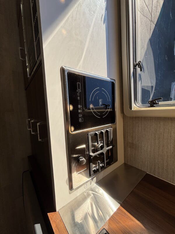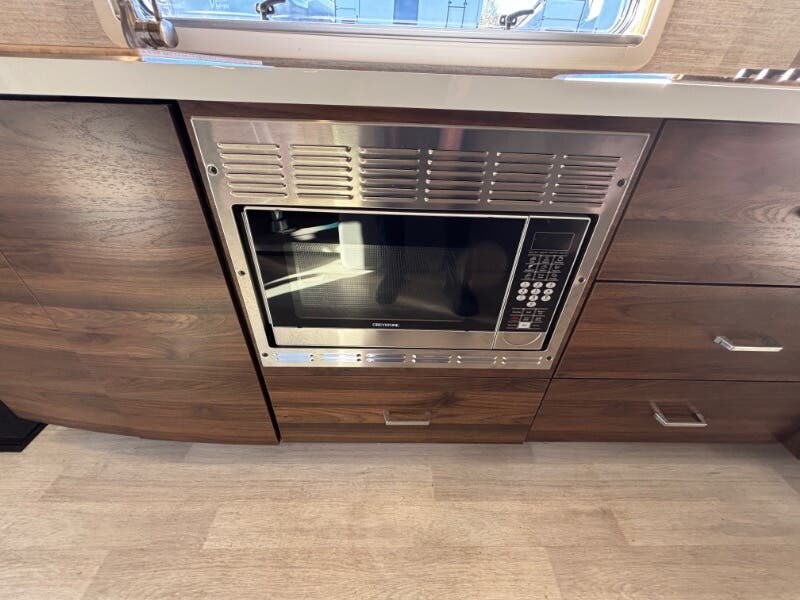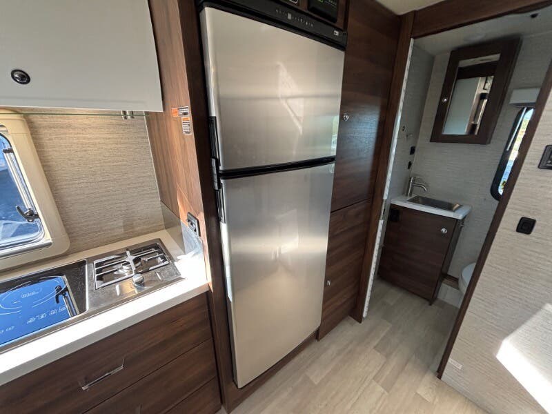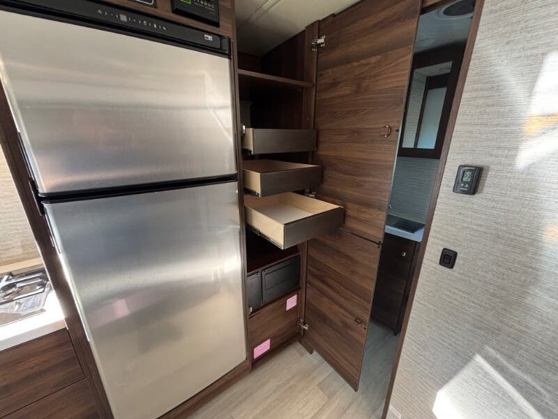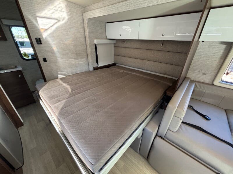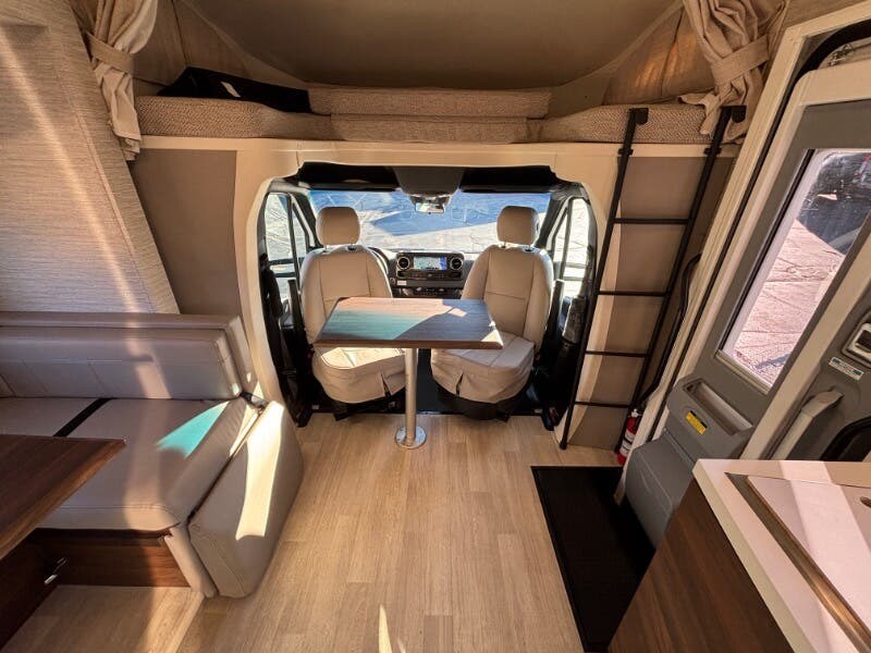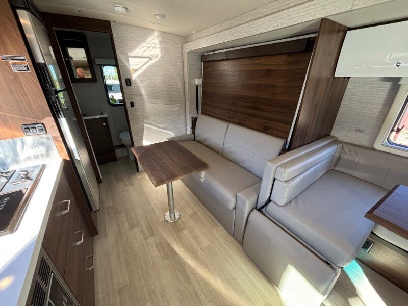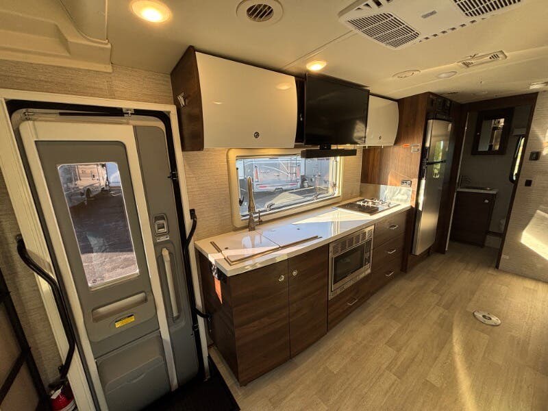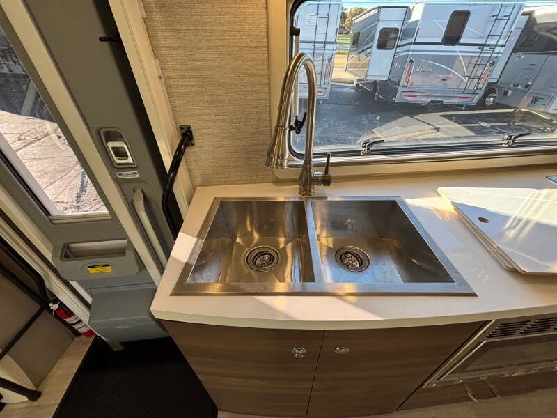 Features Include: 188 HP, 220-Amp Alternator, 3-Point Seat Belts, Color Touch Screen, Handheld Remote, Color Rear Camera, Power Windows, Power Mirrors, LED Headlights, Lane Keeping Assist, Running Board, Stepwell Light, Vinyl Flooring, Soft Vinyl Ceiling, Tinted Coach Windows, Galley Mini Blinds, Laminate Countertops, Stainless Steel Sink, USB Charger, Cable TV Input, LED HDTV, Privacy Curtain, Medicine Cabinet, Flexible Shower Head, Foot Pedal Toilet, 30-Amp Service Cord, 45-Amp 12v Converter, 15k AC, Lockable Water Fill, Fiberglass Roof