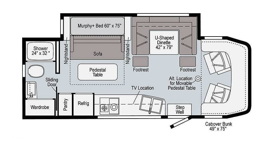Garage kept and exceptionally maintained, this RV comfortably sleeps up to six with a queen-size Murphy bed, a spacious over-cab bunk, and a convertible dinette sleeper.