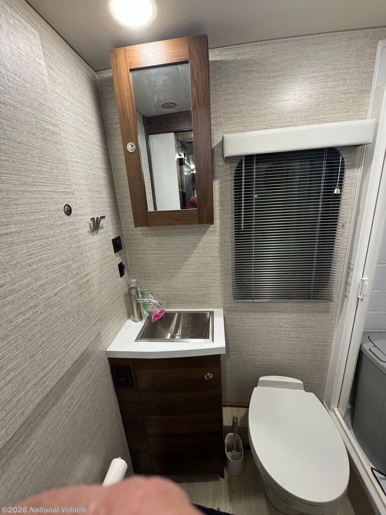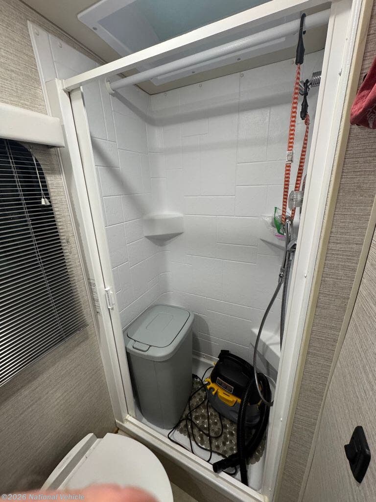 A couple or family will enjoy the look of the interior each time they take the RV on the road. From the curved cabinets, the lighted soft close galley drawers and the theater seating and sofa seat there will surely be a favorite feature for everyone. The cross-coach storage holds larger items, and the above-bed Anything Keeper storage stows things such as cellphones, keys, chargers, and more. Many USB ports available by the bed for charging. You will be able to easy set up the queen Murphy+ bed when it's time for bedtime while the kids sleep on the cabover bunk. Everyone can get cleaned up in the rear bathroom, with instant hot water and shower, with a space savings sliding door. Cooking is easy with full amenities including a convection microwave/oven. Selling for health reasons.