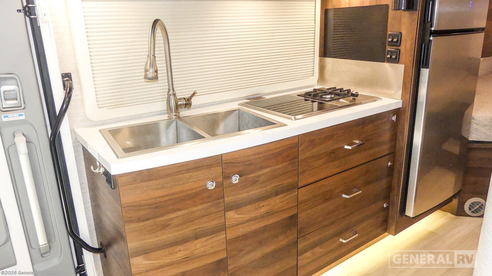 Experience the ultimate in luxury and versatility with the 2022 Winnebago View 24V. This motorhome is built on the reliable Mercedes-Benz Sprinter 3500 chassis, offering a powerful V6 engine with 188 horsepower and 325 lb-ft of torque. Its compact yet spacious design, at just over 25 feet in length, makes it perfect for both adventurous road trips and serene camping getaways. Inside, the View 24V is thoughtfully designed to maximize comfort and functionality. The rear bedroom features versatile twin beds that can easily convert into a large flex bed, accommodating various sleeping arrangements. The front living area boasts a TrueComfort+ sofa with a movable pedestal table, ideal for dining or relaxing with loved ones. The cabover bunk provides additional sleeping space, ensuring that up to six people can rest comfortably. The center kitchen is equipped with a full-size refrigerator and a convection cooktop, making meal prep a breeze. Enjoy the convenience of a powered retractable awning for outdoor relaxation and entertainment. With its sleek design and high-quality amenities, the Winnebago View 24V is your ticket to unforgettable journeys. For more details or to see this remarkable RV in person, visit your nearest General RV dealership.