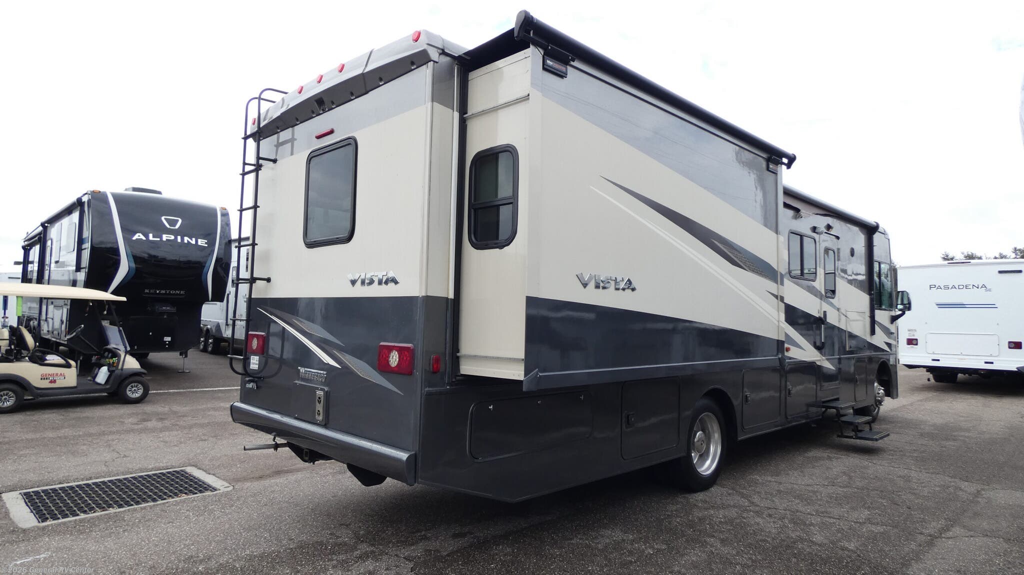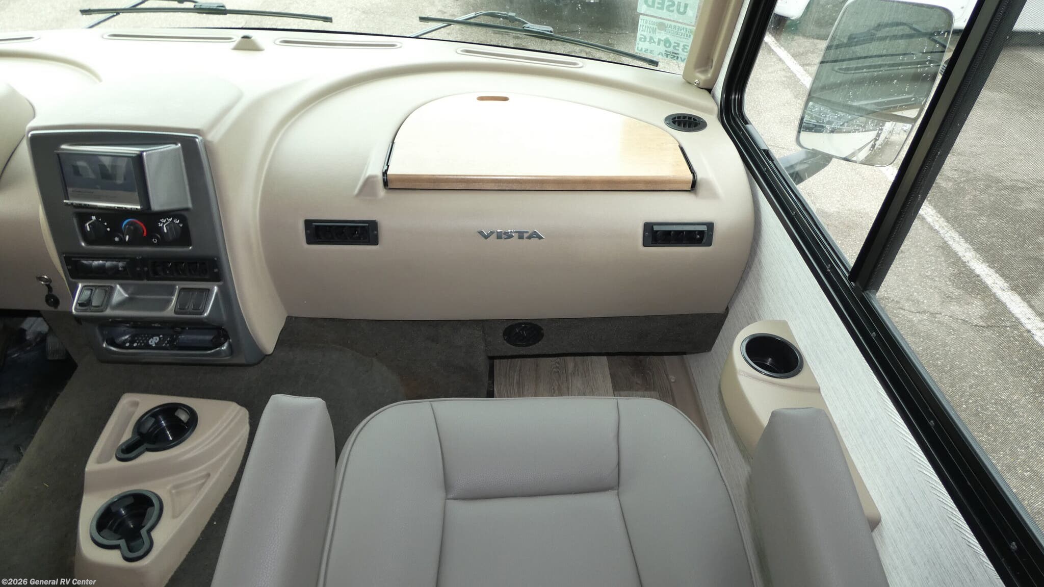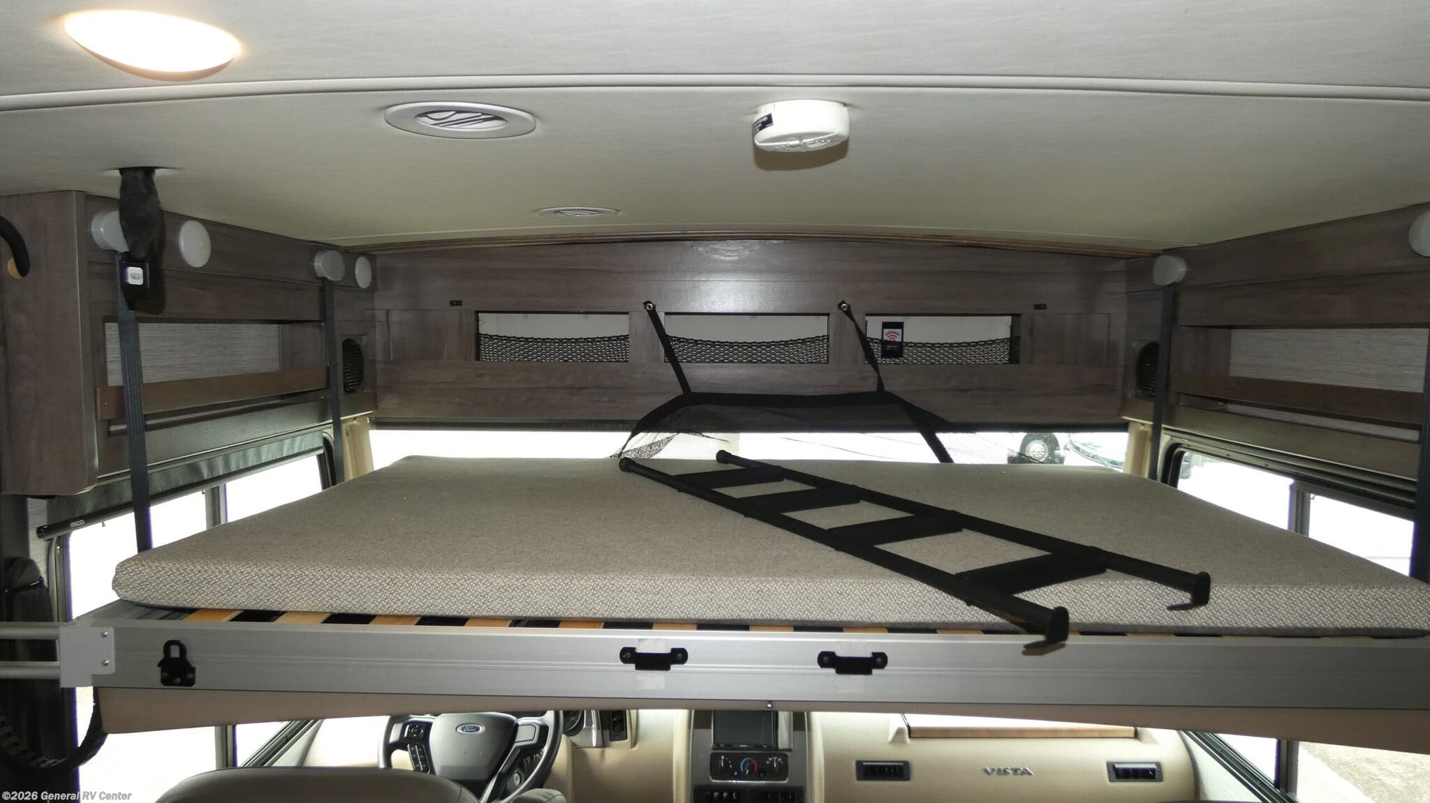 Winnebago Vista Class A gas motorhome 35U highlights: Rear Private Bedroom Full Bathroom Large Wardrobe Exterior Entertainment Don't pass up your chance to travel in true luxury with this motorhome! There is enough space for everyone to relax, eat, and sleep especially if you use the StudioLoft powered 48" x 80" bed above the swivel cab seats with a removable pedestal table in between them. The 42" x 68" booth dinette with hi-lo table can also be sleeping space. The full bathroom has a 26" x 38" shower to freshen up in and a large wardrobe across from it for your toiletries or other necessities. The rear private bedroom has a 72" x 75" bed across from a wardrobe and a vanity to help you look your best! Every one of these Winnebago Vista Class A gas motorhomes expand horizons while bringing families together! They are powered by a 7.3L PFI V8 engine with a Ford F53 chassis, and also have a hill-start assist and electronic stability control, plus enough towing capacity to bring along one of your favorite toys. The adjustable swivel cab seats can slide and recline so you can be sure to have the perfect level of comfort in addition to entertainment with a Sony 7" touch panel color monitor that is Sirius XM ready and Bluetooth compatible with Android Auto and Apple CarPlay. The powered MCD blackout roller visor/shade on the front windshield provides extra privacy, and the passenger dash workstation lets you get some work done while on the road. Come find your favorite model today!
