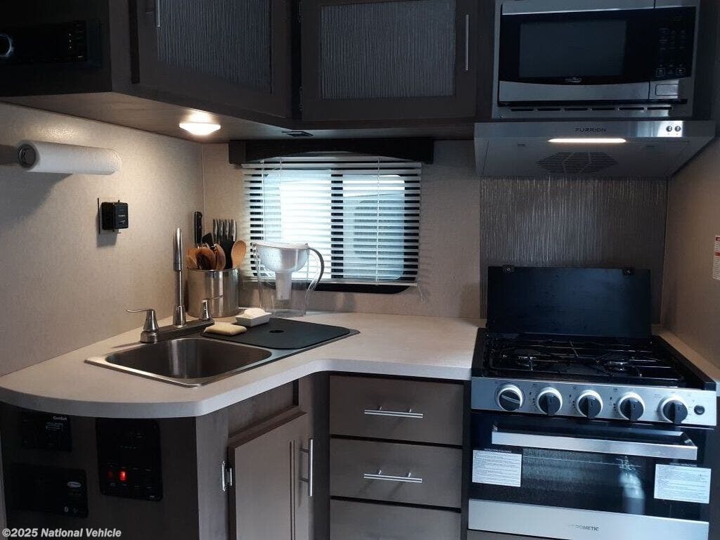At 10 feet in floor length, the 910DB makes excellent use of space with a large dinette slide that opens up the living area and converts to additional sleeping space. The front cabover bedroom features a comfortable California Queen bed with dual wardrobe closets and overhead storage. The fully equipped kitchen includes a three-burner range with oven, stainless steel sink, microwave, and a large 7 cu. ft. refrigerator?giving you everything you need to cook on the road.