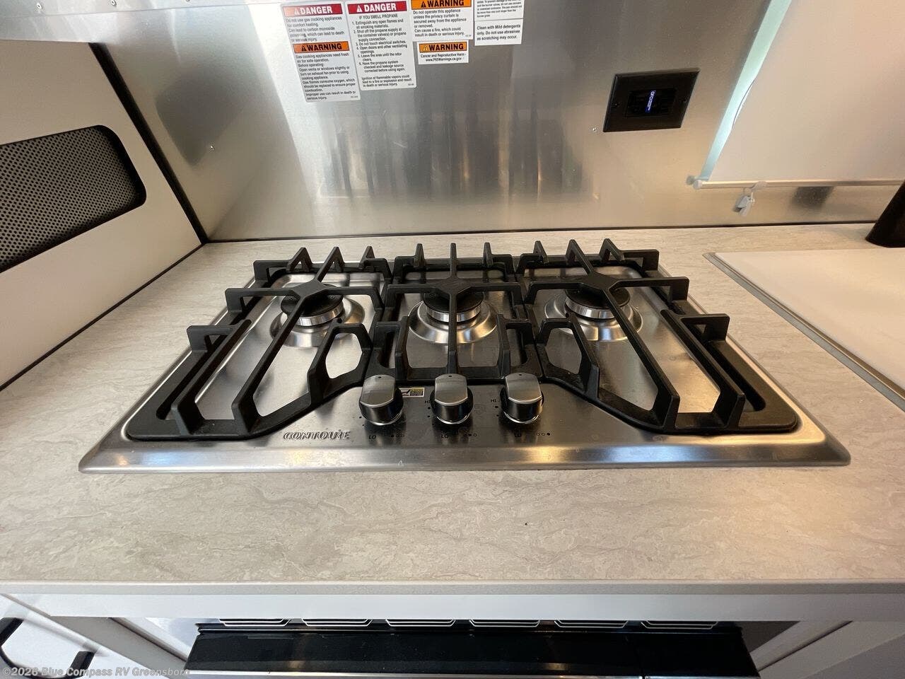 You'll always have a stylish and comfortable place to stay with the Airstream Caravel travel trailer! The manual Zip Dee patio awning is made of a performance Sunbrella fabric, and there are matching optional window awnings that can help keep the interior cool and private. The rear bumper storage will help you keep your tools, cords, and more hidden away in a bonus storage space, and the JL stereo with Bluetooth, surround sound, and subwoofer will play your music throughout the trailer. You can stay powered while off the grid If you add the 100w or 200w optional solar package, depending on the model you choose, and the blackout curtains will let you have privacy when you head to bed. The stainless steel front stone guard protection will prevent damage to the body of your trailer while towing, and the panoramic windows will make the interior fresh and bright with natural sunlight.