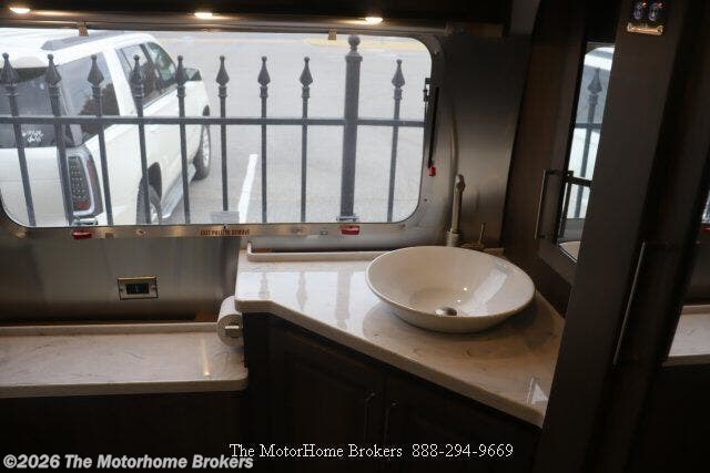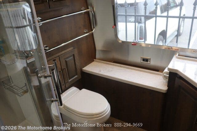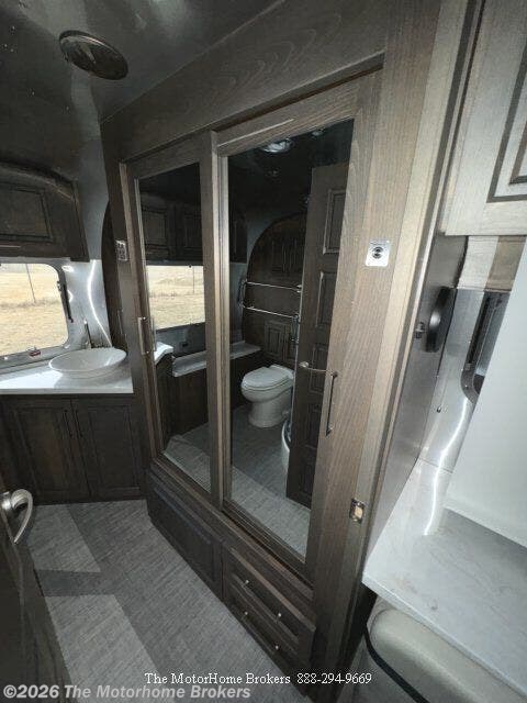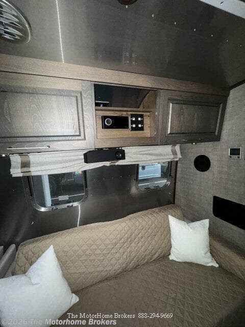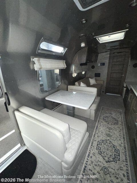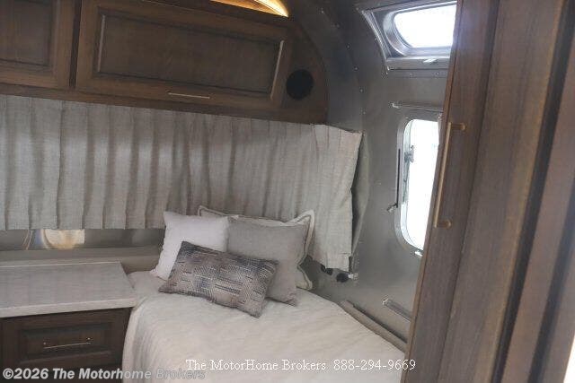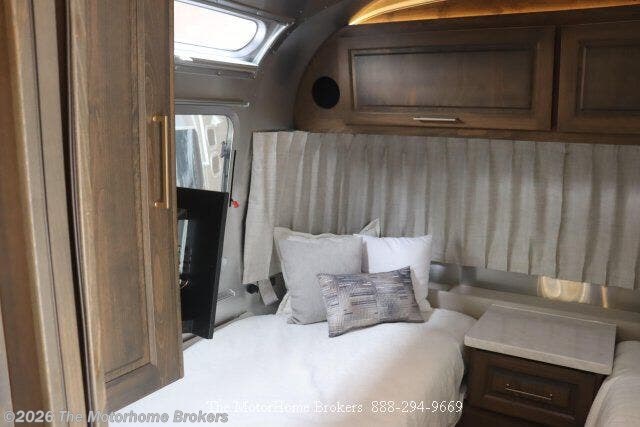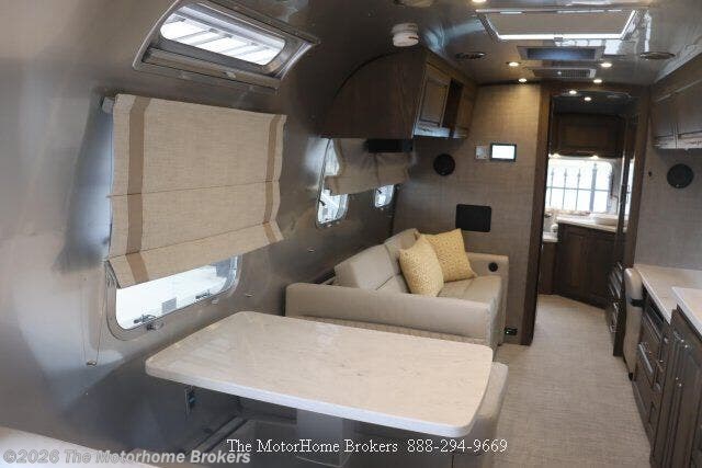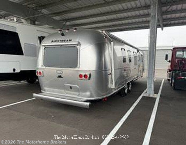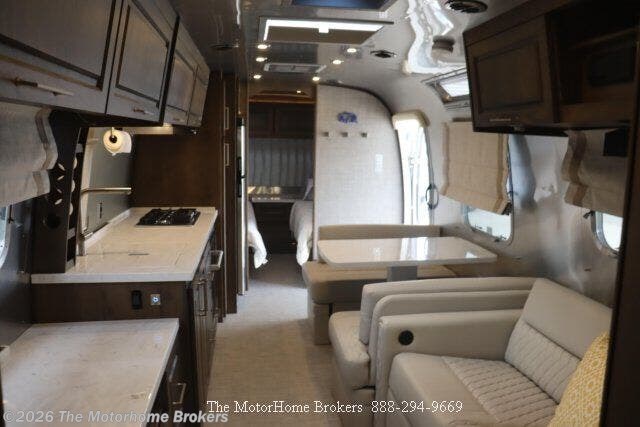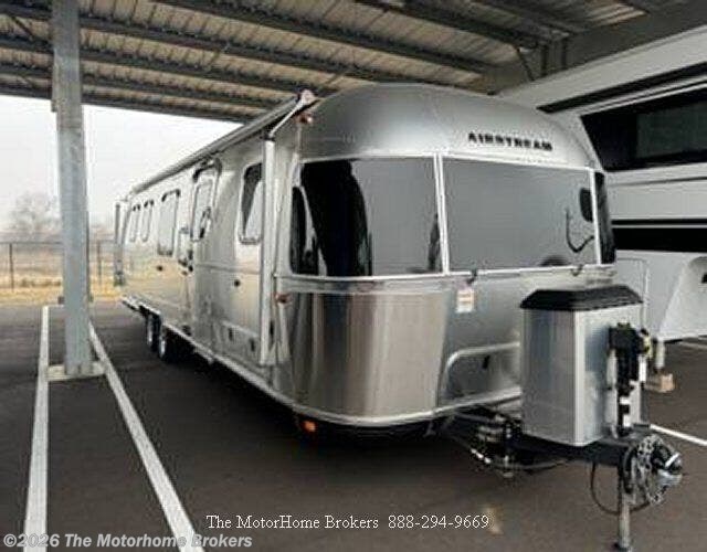 2023 Airstream Classic 33FB Twin Model Classic 33FB Twin. A quality-built trailer that is loaded with nice equipment. Exterior features include heavy-duty power stabilizers, power tongue jack, 50 amp electric service, 2 solar panels,1000 watt pure sine inverter, Lithium batteries, rear view camera, Zip Dee awnings all around with Sunbrella fabric, dual 15000 BTU A/C units with heat pumps, Alde hydronic heating, dual 30 lb. propane tanks, Michelin tires on stylized aluminum wheels and 3 exterior storage compartments. This layout features a front bedroom with power lift twin beds with storage below, HDTV, black out shades, a mid coach galley with lots of beautiful cabinets above, with Corian counter tops, a large sink, a 3 burner cooktop with oven, 2 door refrigerator, convection microwave and a powered convertible dinette that adds extra sleeping space. Moving towards the rear is the living area with an ultra leather lounging sofa with 2 powered footrests across from the 60 inch power screen HD projection TV with Bose sound bar, auto satellite, surround sound system for your entertainment, a work station/desk, built-in safe and chair in this area. Moving toward the rear is a fully equipped bathroom with a huge wardrobe with storage drawers below, a nice glass enclosed shower, heated towel bar, toilet, vanity with a vessel sink, medicine cabinet, heated floors and so much more. This beauty is clean, shows as new, with no smokers or pets, stored under cover when not in use. No disappointments and ready for your traveling adventures. A change in family plans prompts this sale. This Airstream Classic is located in Southaven, MS for $140,000. Photos and factory specs available by email or by calling The MotorHome Brokers 888-294-9669. We invite you to come out and take a closer look soon. This is a nice one !