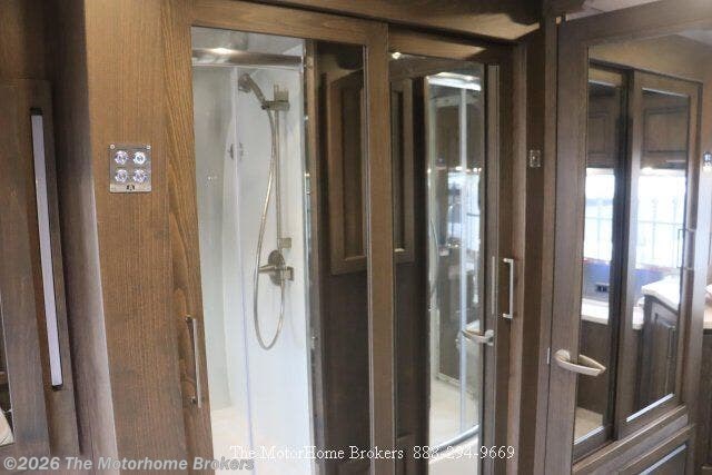 Booth Dinette, Computer Station, Corian Countertops, Dinette Bed, Glass Shower Door, Heated Floor, Kitchen Sink, Leather Furniture, Medicine Cabinet, Non-Smoking Unit, Overhead Cabinetry, Roof Vents, Self Contained, Shower, Sofa Bed, Toilet, Wardrobe(s)