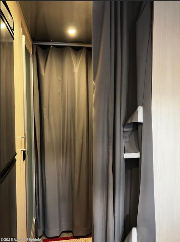 At 25 feet, it strikes the perfect balance-easy to tow, yet loaded with space and functionality. Step inside and you?re welcomed by panoramic front windows with blackout shades, flooding the cabin with natural light while giving you total privacy when needed. The front bedroom offers a true retreat, featuring a walk-around queen memory foam mattress, overhead storage, and premium Ultraleather seating nearby for lounging in style.