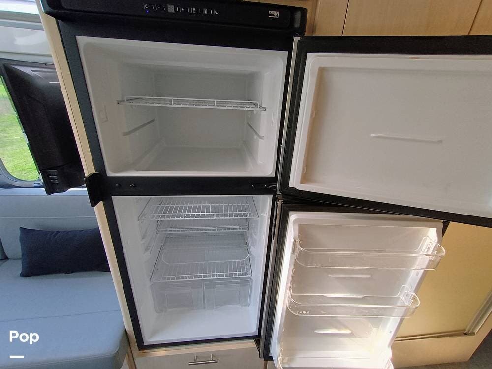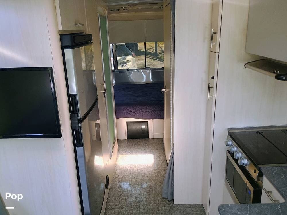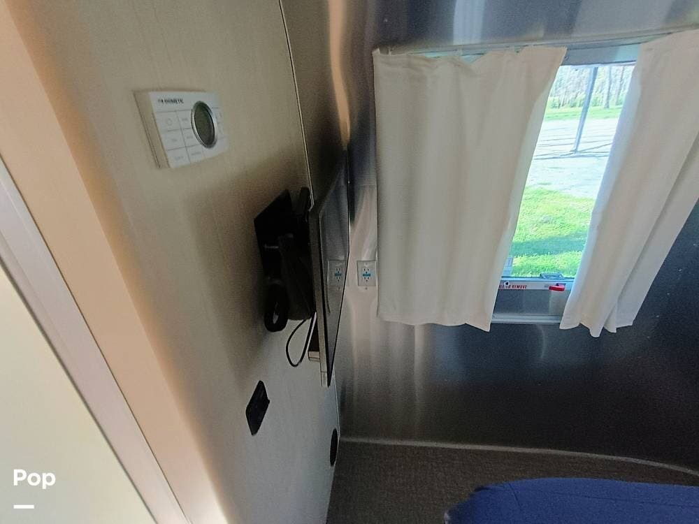 Advanced tech features include climate control, a smart TV, Bluetooth speakers, and solar panels. Whether off-grid or at a campsite, this Airstream is ready for adventure.