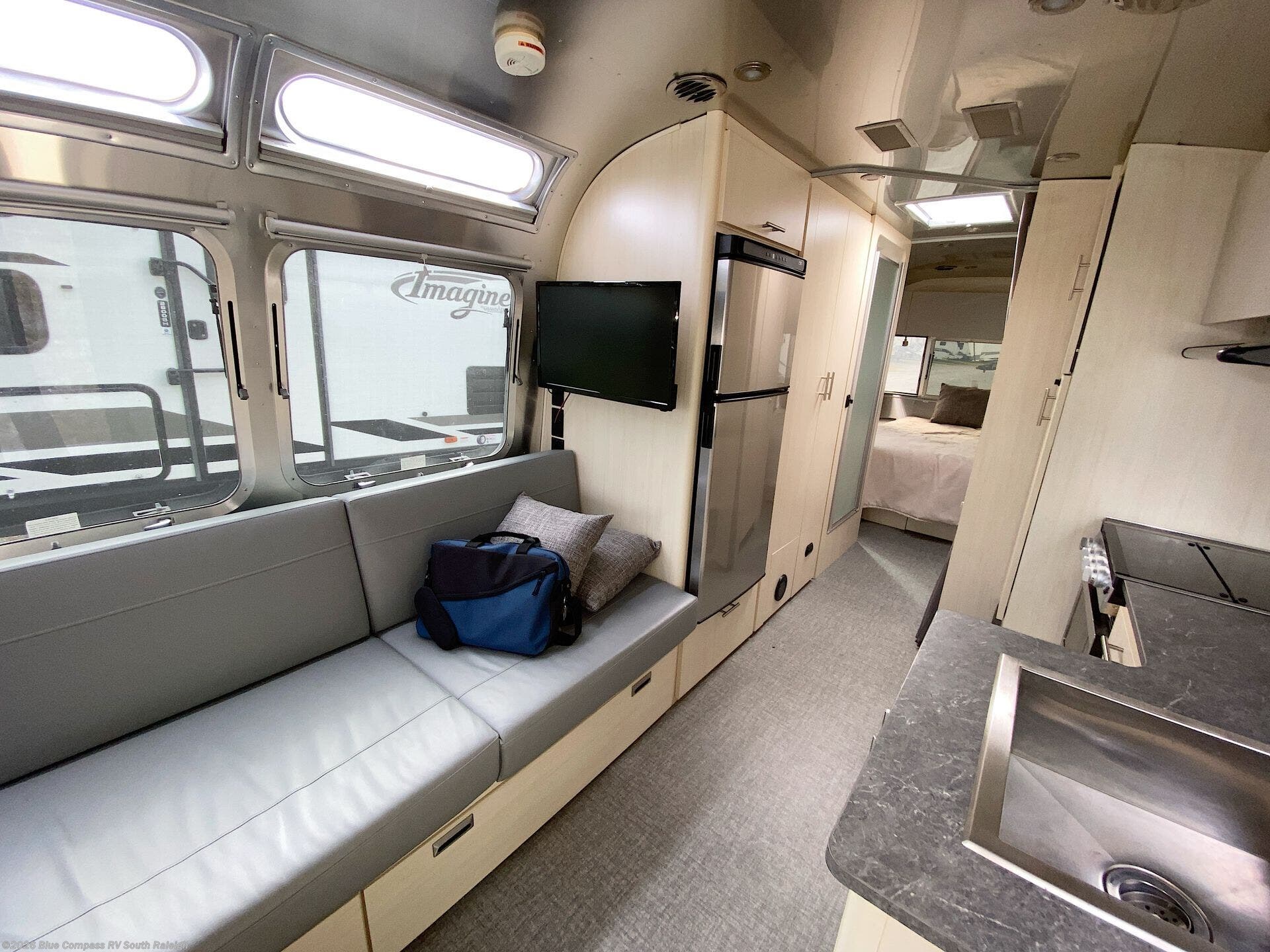 With each Flying Cloud travel trailer by Airstream, there are two axles, and each is built for ease of towing, plus there is a rear-view camera to make reversing and parking easier, and stainless steel front stone guards to protect the lower segments from road debris. The iconic Airstream design is created outside and inside by the semi-monocoque aluminum superstructure, the temperature reducing one-piece white aluminum roof, the panoramic front windows, and the stylish aluminum wheels. The interior will have you feeling right at home with handcrafted cabinetry, plenty of storage and counter space, sleek roller blinds and blackout curtains, plus residential style faucets!