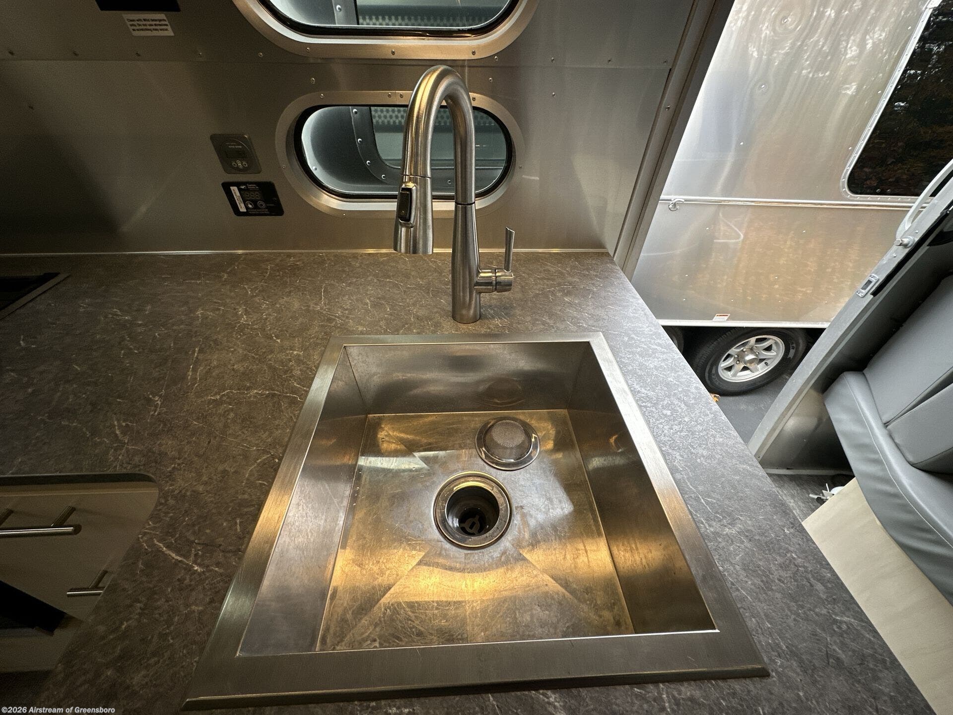 With each Flying Cloud travel trailer by Airstream, there are two axles, and each is built for ease of towing, plus there is a rear-view camera to make reversing and parking easier, and stainless steel front stone guards to protect the lower segments from road debris. The iconic Airstream design is created outside and inside by the semi-monocoque aluminum superstructure, the temperature reducing one-piece white aluminum roof, the panoramic front windows, and the stylish aluminum wheels. The interior will have you feeling right at home with handcrafted cabinetry, plenty of storage and counter space, sleek roller blinds and blackout curtains, plus residential style faucets!