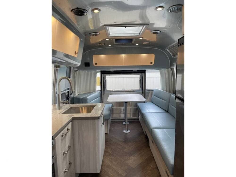 Underfoot, seamless vinyl flooring, fully aluminum interior walls, and carefully crafted Italian Lite-Ply cabinetry underscore Airstream's enduring commitment to durability, design, and craftsmanship