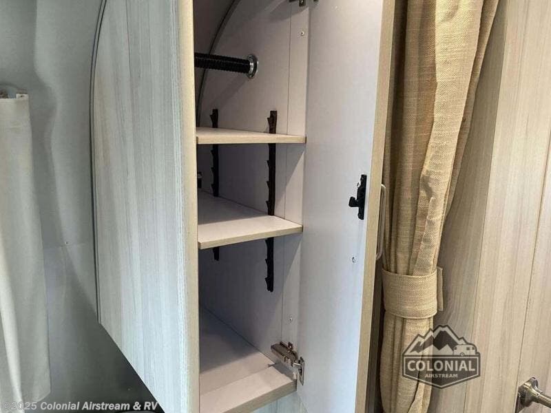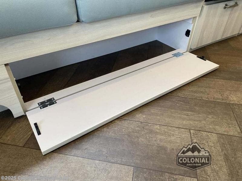 Every time you step foot into the Airstream International travel trailer, you will feel as if you are breathing in a breath of fresh air! The fresh coastal décor was inspired by the waterfront, and the stylish interior delivers a relaxing environment and comfortable luxury. The panoramic windows increase the amount of natural sunlight that streams through to the interior, but they also have blackout shades that you can close whenever you need a darkened room. The beautiful handcrafted Italian Lite-Ply laminated cabinetry is an attractive base for the overhead storage lockers that have sliding doors and LED lighting. The dimmable interior LED lighting will create the perfect amount of illumination for you as you spend time indoors. The exterior has excellent features as well with its enclosed aluminum insulated heated underbelly, unique front door key with heavy-duty deadbolt, optional solar package, solar front window protection, and exterior shower with hot and cold water.