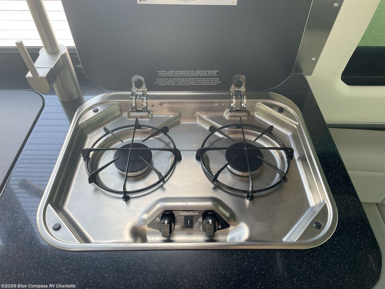 Your adventures are made complete in this nineteen foot coach that can sleep two comfortably. When you arrive at the campground, you can prepare lunch on the two burner gas cooktop, or use the convection microwave. There is also a slide out pantry and a 3.2 cu. ft. 12V refrigerator and freezer for your food storage. The rear sofa/bed and side seats convert to a lay-flat bed, giving you the largest best in its class, plus there is a convenient wet bath on board to stay clean throughout your trip.