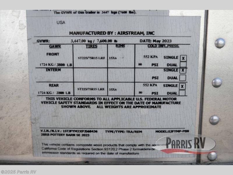 Request More Info on this 2023 Airstream Pottery Barn Special Edition 28RB Offered for sale by Parris RV