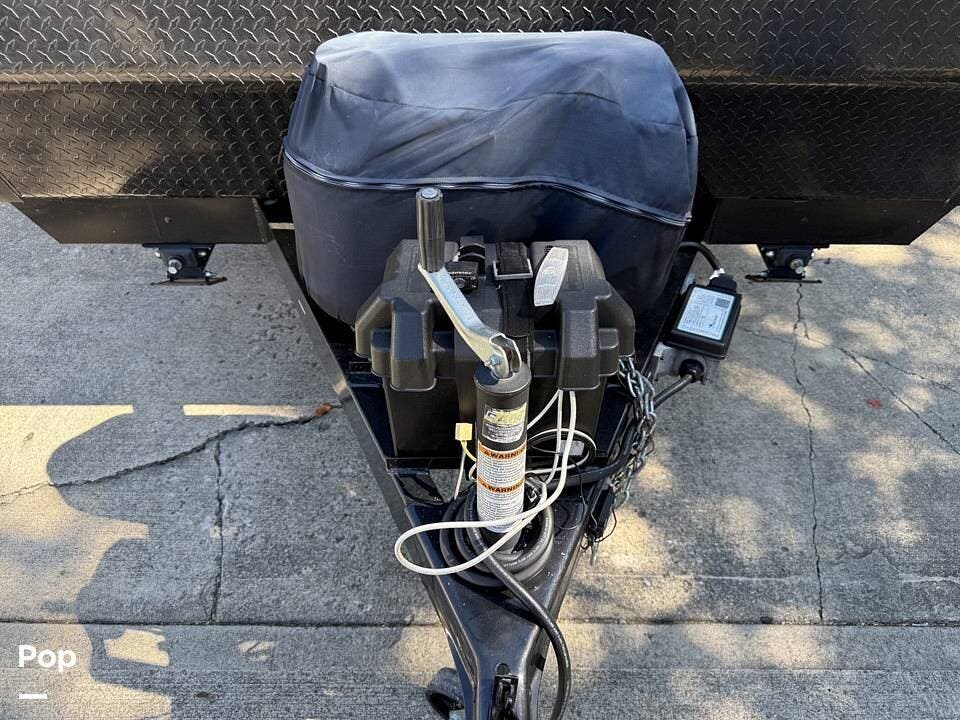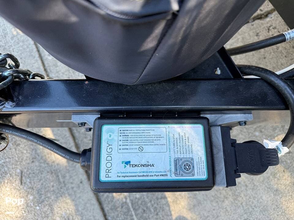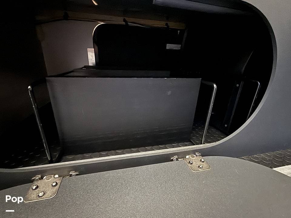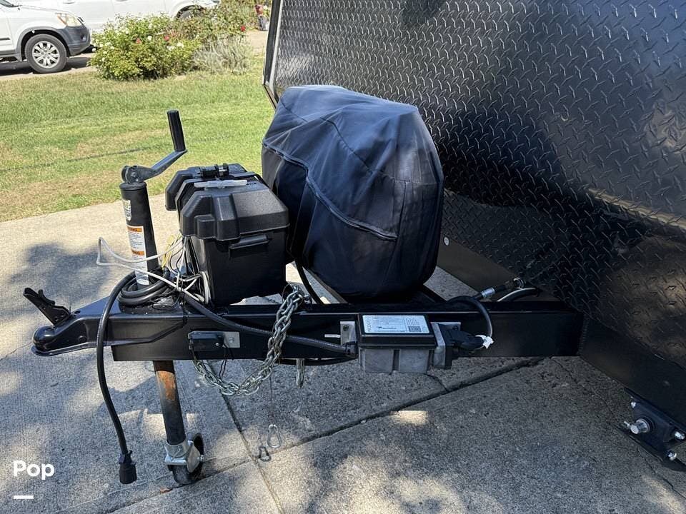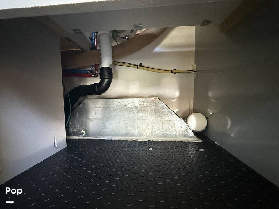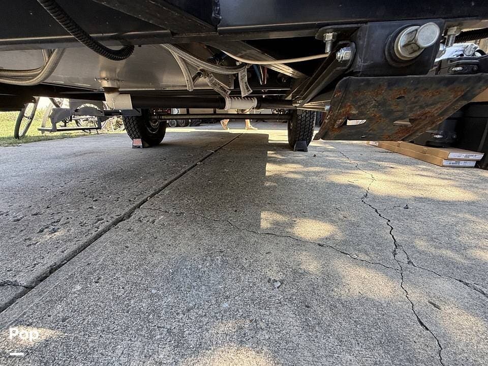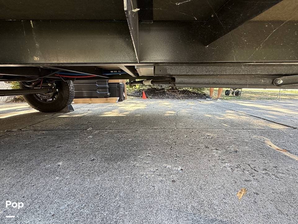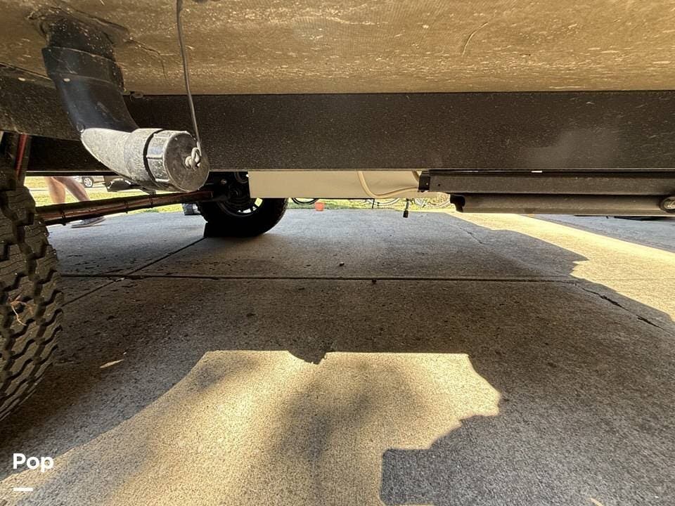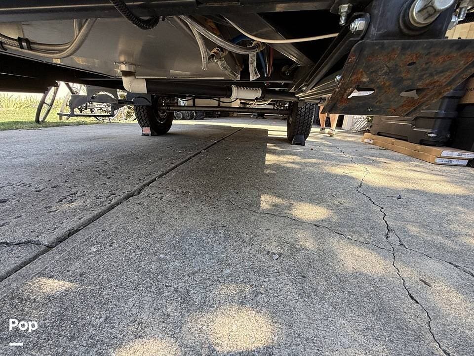 Year-round comfort is ensured with a heat pump A/C unit and a 16,000 BTU furnace. The interior features durable slate gray fiberglass, Azdel composite walls, upgraded upholstery, commercial-grade flooring, and aluminum-framed cabinetry with SIMONA BOATBOARD panels.