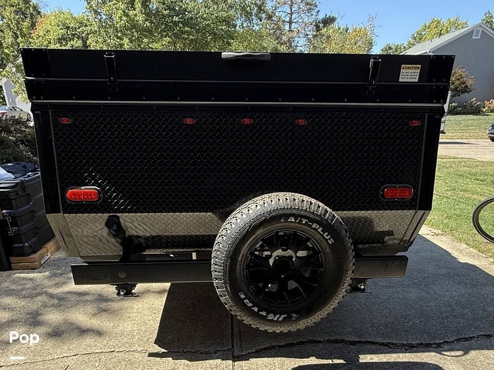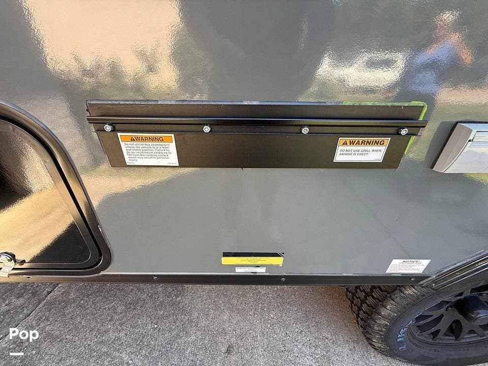 Off-grid adventures are no problem thanks to a 185W solar panel, dual propane tanks, and a large 35-gallon freshwater tank. Built for the outdoors, it features 15" off-road wheels, raised ground clearance, and an exterior LP hookup for your grill.