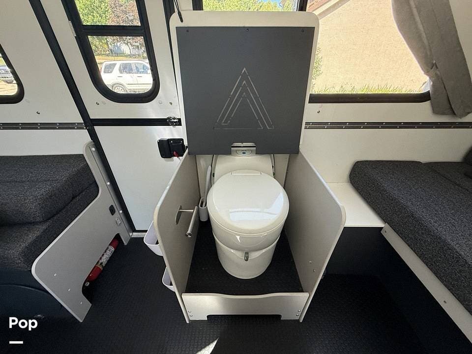 Setup is a breeze with the Highwind lift assist, so you'll be ready to camp in minutes. Inside, it comfortably accommodates four adults with two true queen beds (60" x 80"), plus a cassette toilet and a hidden shower for added convenience wherever you go.