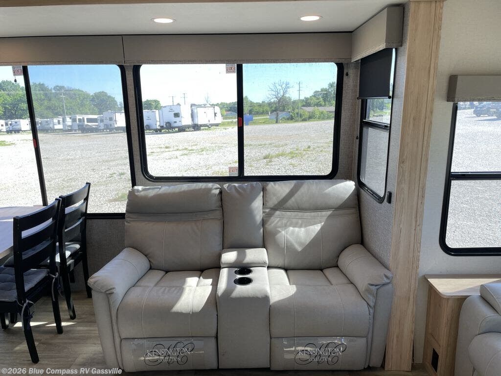 A benchmark chassis creates a space saver upper deck with each one of these Avenue fifth wheels by Alliance RV! The 101 in. wide-body construction gives you more room to walk around and the flush slide out floors throughout prevent any tripping. There are Azdel composite sidewalls inside and out, and a seamless fully walkable PVC roof for extreme durability, zero maintenance, and it is more solar reflective because of the bright white color. Twin 13,500 BTU A/C units provide 27,000 BTUs of cooling power which are ultra quiet and independently controlled keeping you comfortable during your entire trip. And, the fully enclosed and heated underbelly means that you can extend your camping season into the colder months if you like. You are sure to love the "no carpet zone" making each Avenue easy to clean and allergen free, not to mention pet friendly with vinyl flooring throughout. And, strategically placed Atrium windows in the bedroom and living area will not only provide more light, cross ventilation and fresh air, but bring a spectacular view of your surroundings right inside. You can maximize your space throughout with innovative storage solutions like the hidden storage behind the TV, inside the end tables, ottoman, and dinette chairs. Come choose your favorite model today!