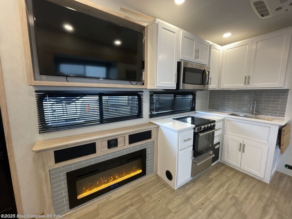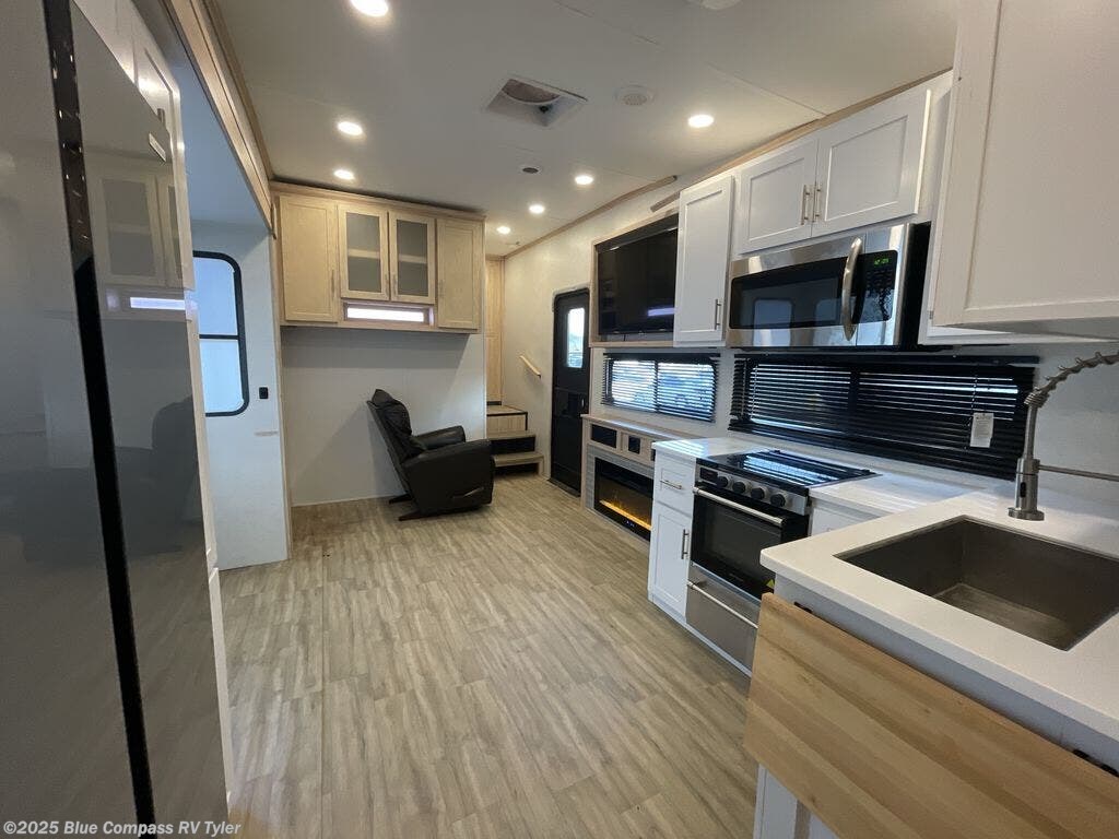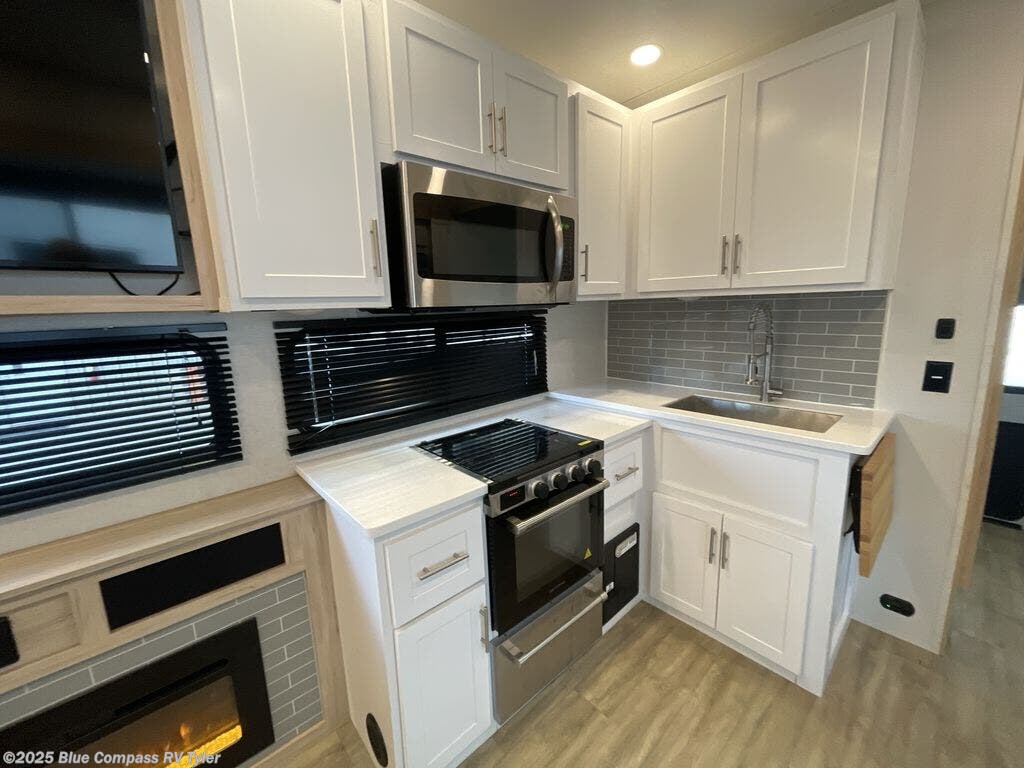 A benchmark chassis creates a space saver upper deck with each one of these Avenue fifth wheels by Alliance RV! The 101 in. wide-body construction gives you more room to walk around and the flush slide out floors throughout prevent any tripping. There are Azdel composite sidewalls inside and out, and a seamless fully walkable PVC roof for extreme durability, zero maintenance, and it is more solar reflective because of the bright white color. Twin 13,500 BTU A/C units provide 27,000 BTUs of cooling power which are ultra quiet and independently controlled keeping you comfortable during your entire trip. And, the fully enclosed and heated underbelly means that you can extend your camping season into the colder months if you like. You are sure to love the "no carpet zone" making each Avenue easy to clean and allergen free, not to mention pet friendly with vinyl flooring throughout. And, strategically placed Atrium windows in the bedroom and living area will not only provide more light, cross ventilation and fresh air, but bring a spectacular view of your surroundings right inside. You can maximize your space throughout with innovative storage solutions like the hidden storage behind the TV, inside the end tables, ottoman, and dinette chairs. Come choose your favorite model today!
