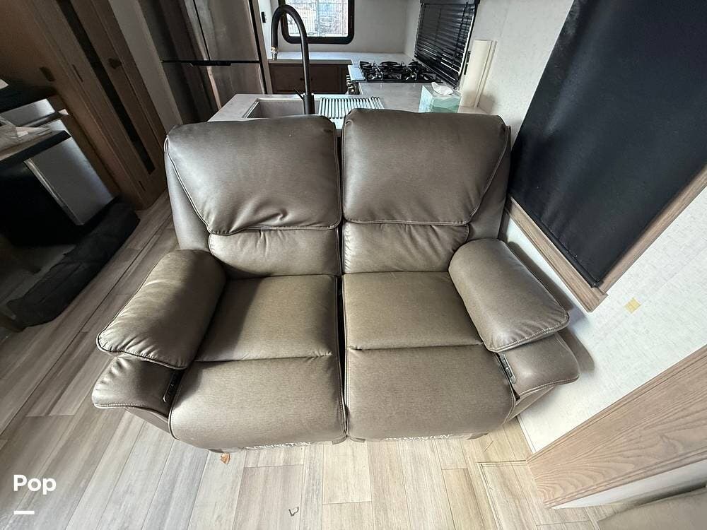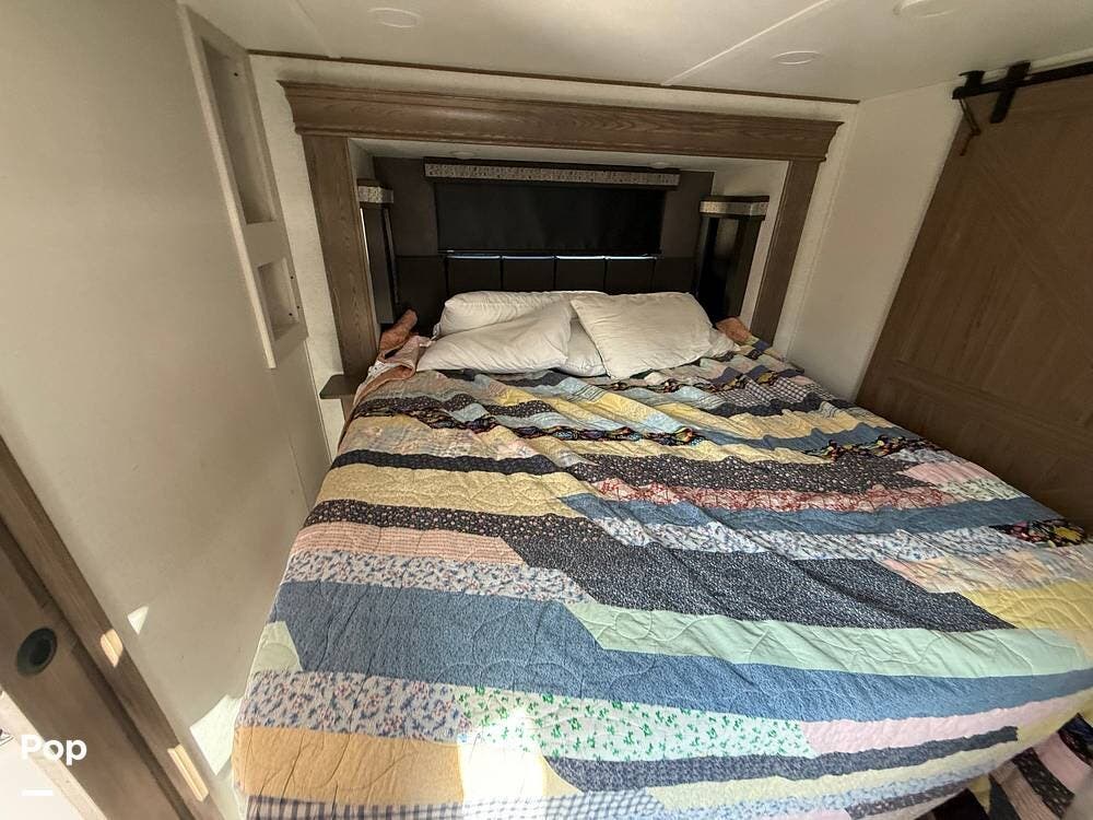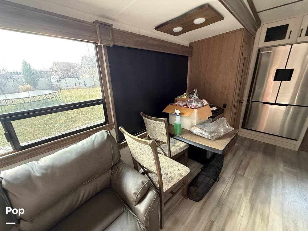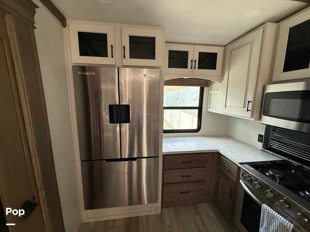 This 2023 Paradigm 382RK Fifth Wheel offers space and comfort for up to six people. It has an upgraded king-sized bed and two sofa sleepers.
