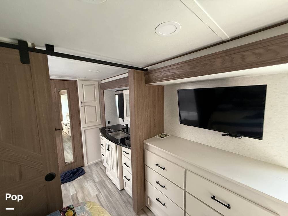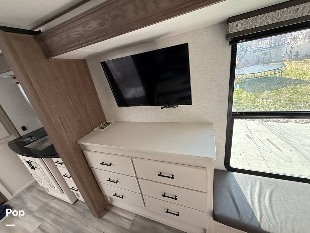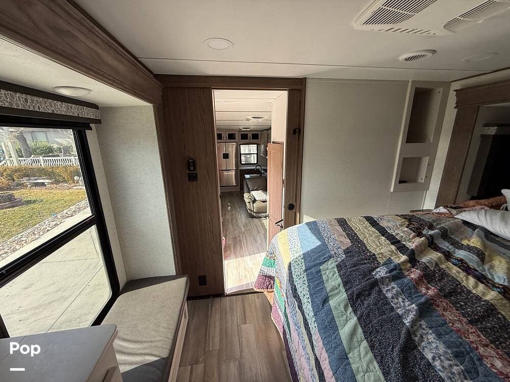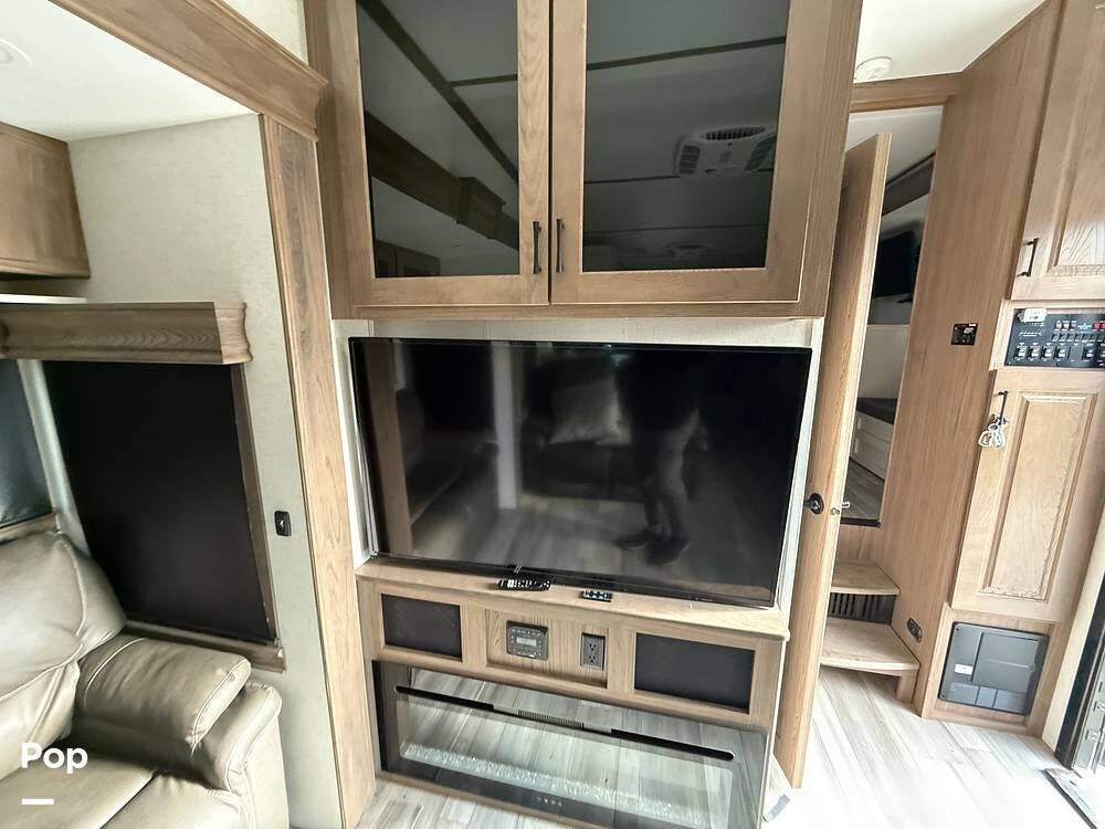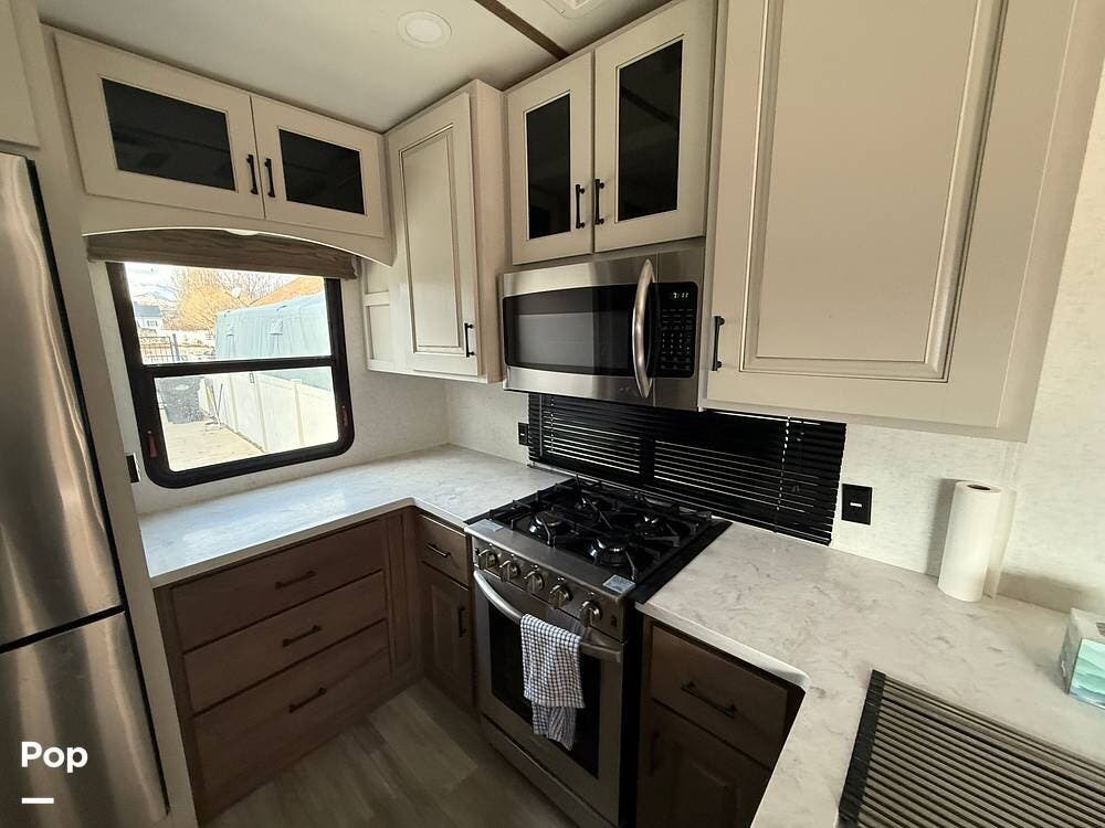 This 2023 Paradigm 382RK Fifth Wheel offers space and comfort for up to six people. It has an upgraded king-sized bed and two sofa sleepers.