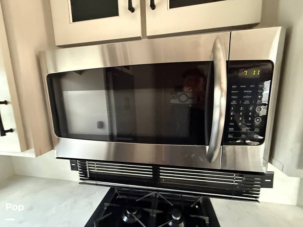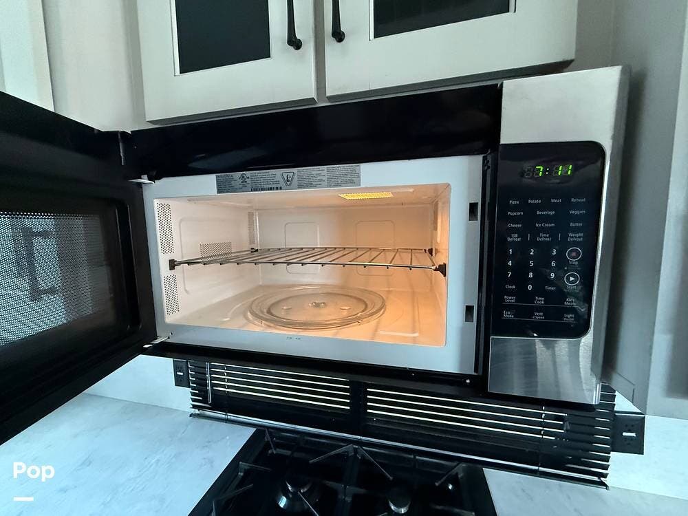 The kitchen has a refrigerator/freezer, stove, microwave, oven, and a large pantry. The dinette adds extra dining space.