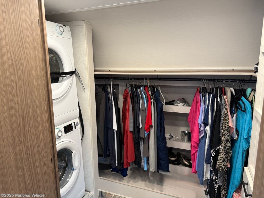 King Master Suite: Relax in a residential king bed with under-bed storage, full-size wardrobe, and washer/dryer ? ideal for extended stays or full-time RV living.