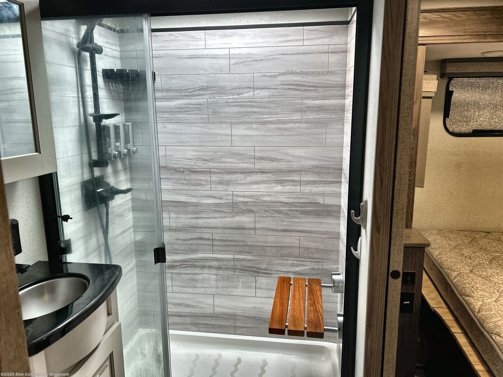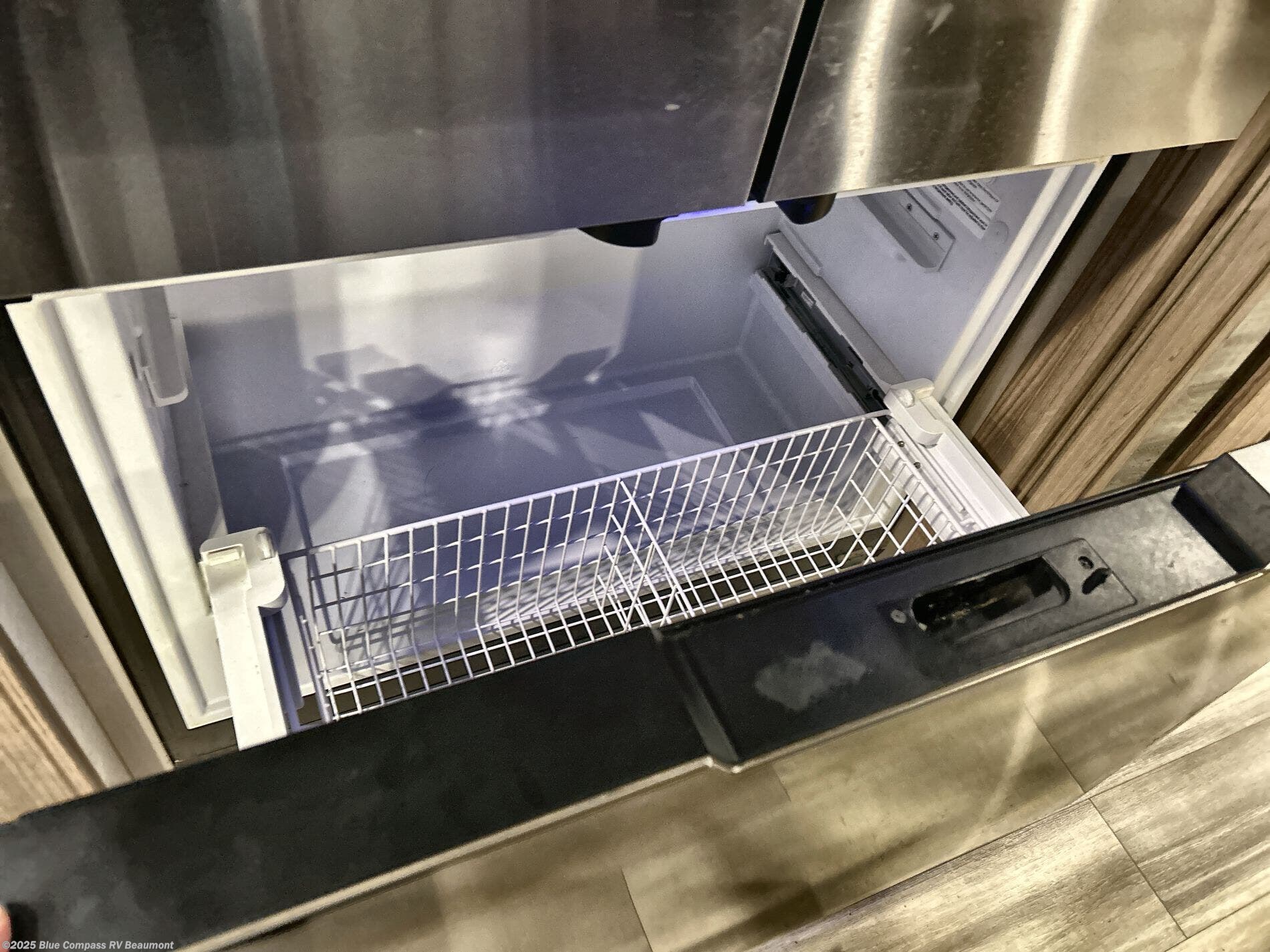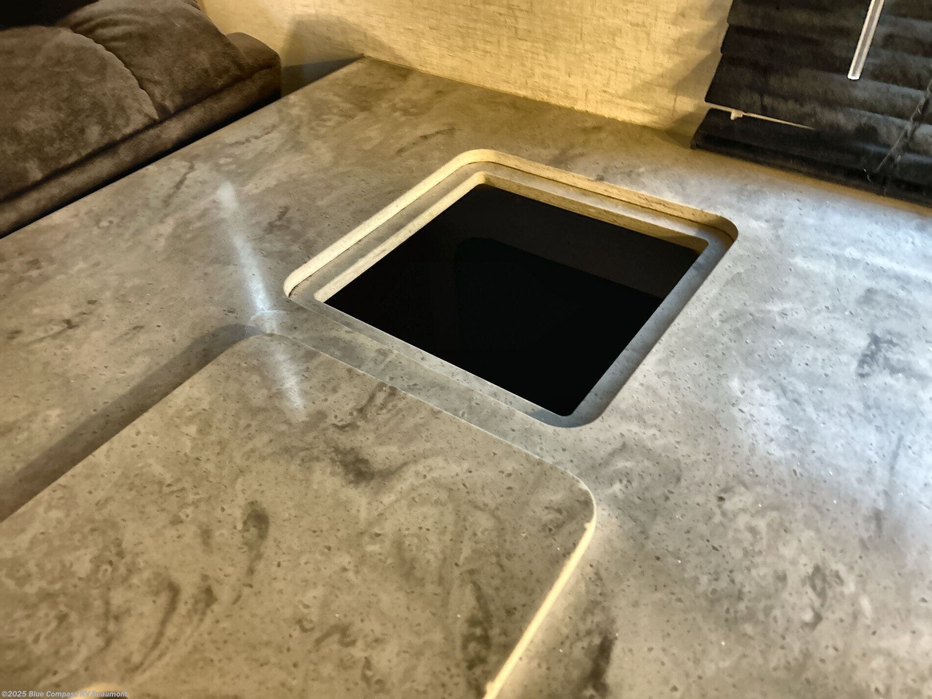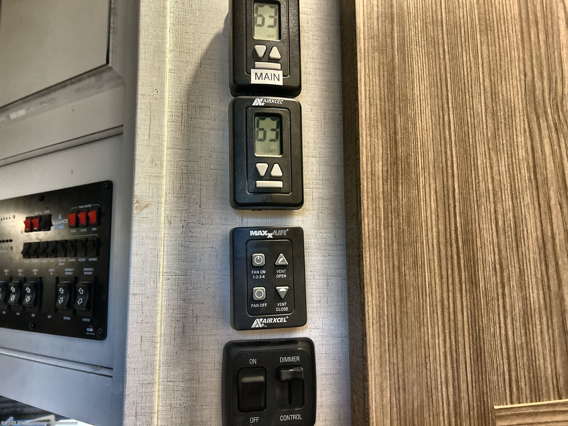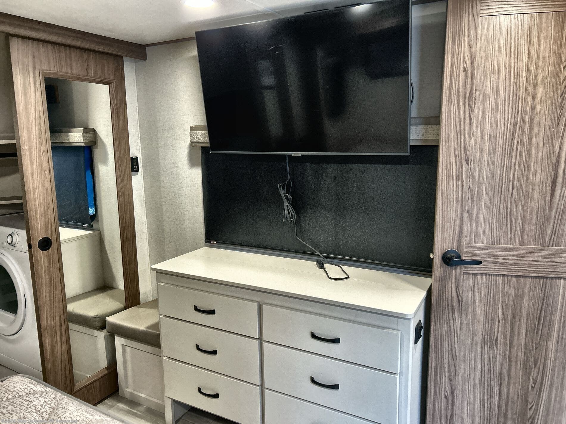 A spacious unit with sleeping for eight with plenty of choices to suit everyone! There is a front private bedroom with a king size bed that offers a large full front closet that has also been prepped for a washer and dryer if you choose that option. The front bath features a 40" x 30" shower and dual entry. Head down to the kitchen and living space at the bottom of the stairs to find a curbside slide that houses the 19 cu. ft. residential refrigerator, a pantry, and a dinette with four chairs. As you continue on toward the rear of this coach, you will find a spacious living area along the roadside with a 50" Smart TV and a fireplace, a sofa sleeper slide, and a dual reclining loveseat. This makes a great gathering place for television watching, game playing, and even added sleeping space if needed at night. The rear private bedroom with its own private bath features a queen bed, two closets, and a Smart TV as well. The multipurpose loft area above can be accessed just before this rear bedroom entry by a ladder, and it is perfect for extra storage, or it can be used for added sleeping that the kiddos are sure to love.