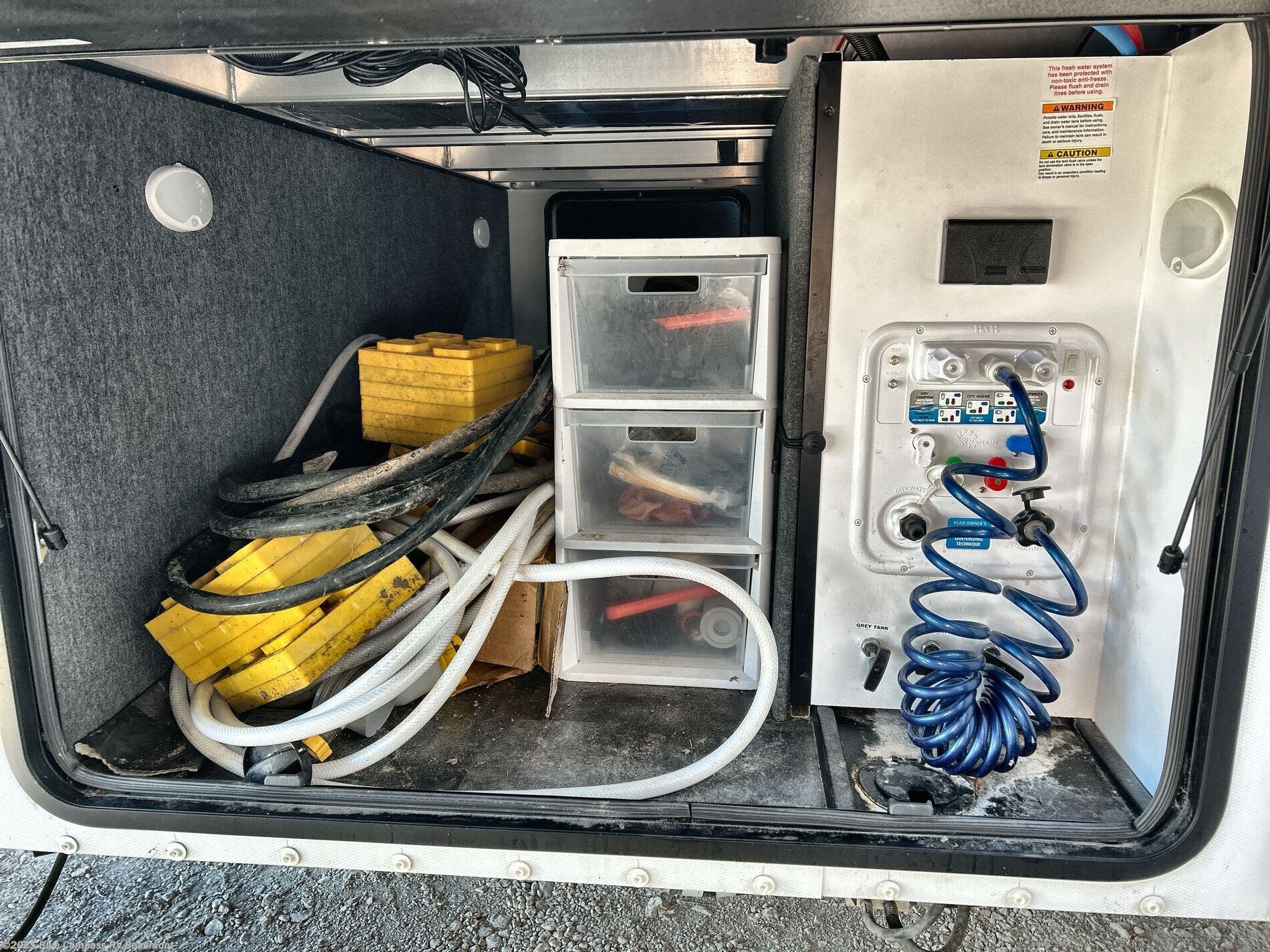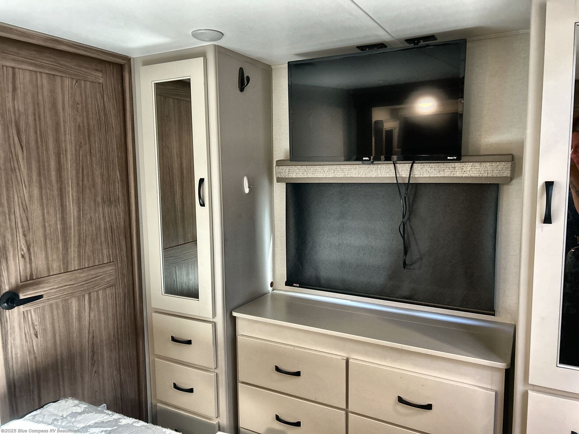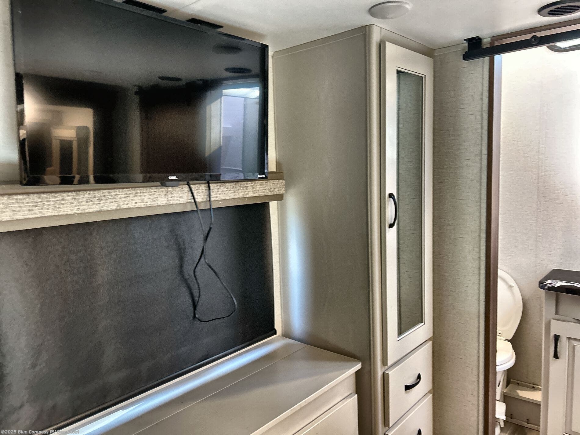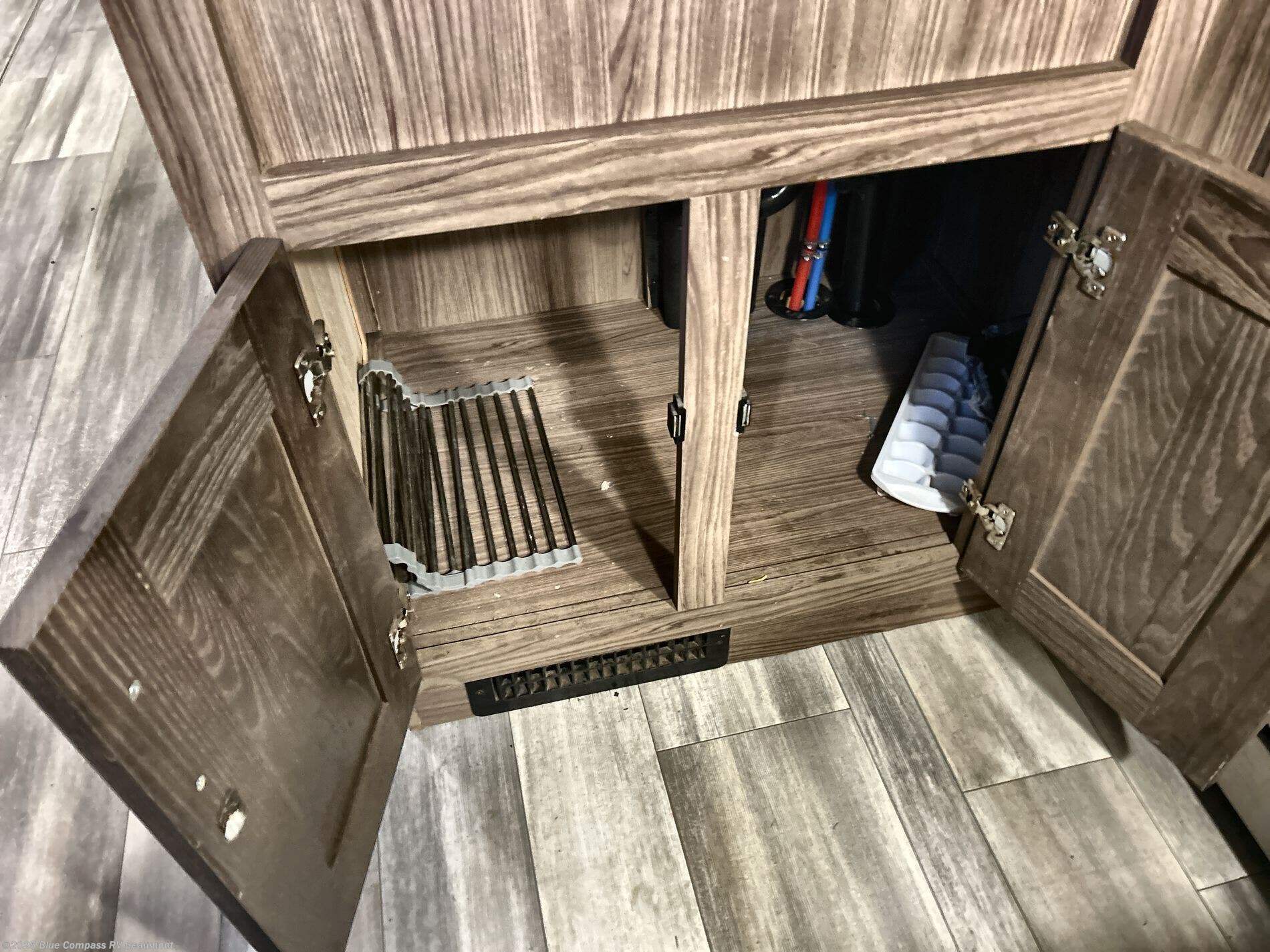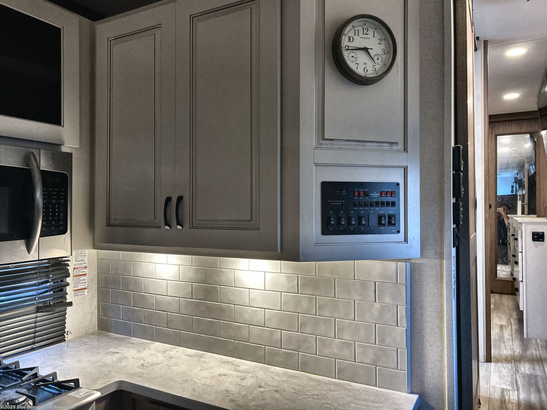 A spacious unit with sleeping for eight with plenty of choices to suit everyone! There is a front private bedroom with a king size bed that offers a large full front closet that has also been prepped for a washer and dryer if you choose that option. The front bath features a 40" x 30" shower and dual entry. Head down to the kitchen and living space at the bottom of the stairs to find a curbside slide that houses the 19 cu. ft. residential refrigerator, a pantry, and a dinette with four chairs. As you continue on toward the rear of this coach, you will find a spacious living area along the roadside with a 50" Smart TV and a fireplace, a sofa sleeper slide, and a dual reclining loveseat. This makes a great gathering place for television watching, game playing, and even added sleeping space if needed at night. The rear private bedroom with its own private bath features a queen bed, two closets, and a Smart TV as well. The multipurpose loft area above can be accessed just before this rear bedroom entry by a ladder, and it is perfect for extra storage, or it can be used for added sleeping that the kiddos are sure to love.