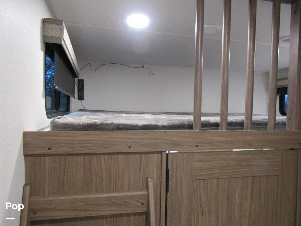 Above the rear bedroom is a separate loft-style bed with stair access.